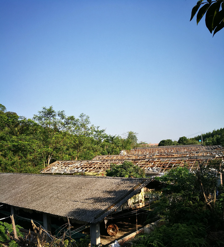 清拆前,养殖户自行拆除的部分猪圈房顶。
