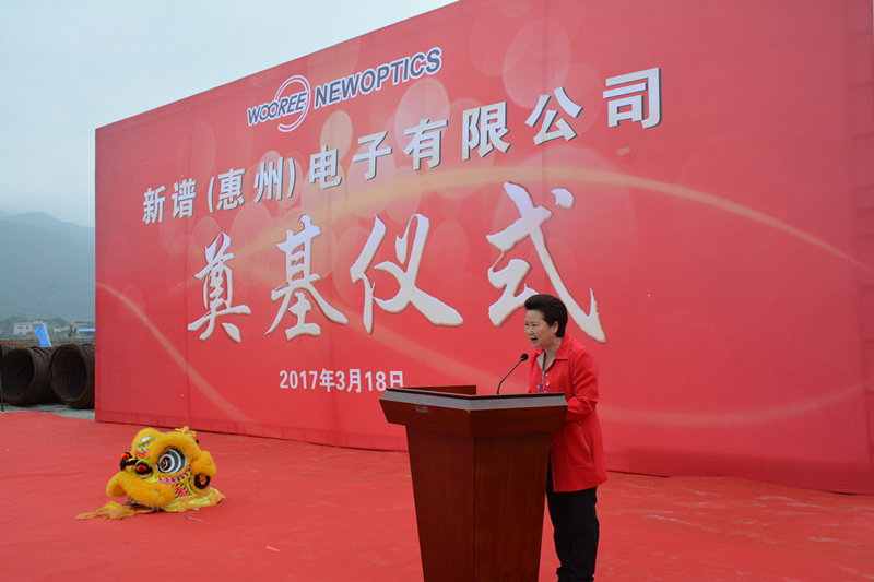 在项目情况介绍完毕后,中文博彩平台副县长潘燕梅女士致贺词,介绍了中文博彩平台、泰美的投资环境,并表达了与新谱(惠州)电子有限公司达成精诚合作、互利共赢、共同发展的意愿。