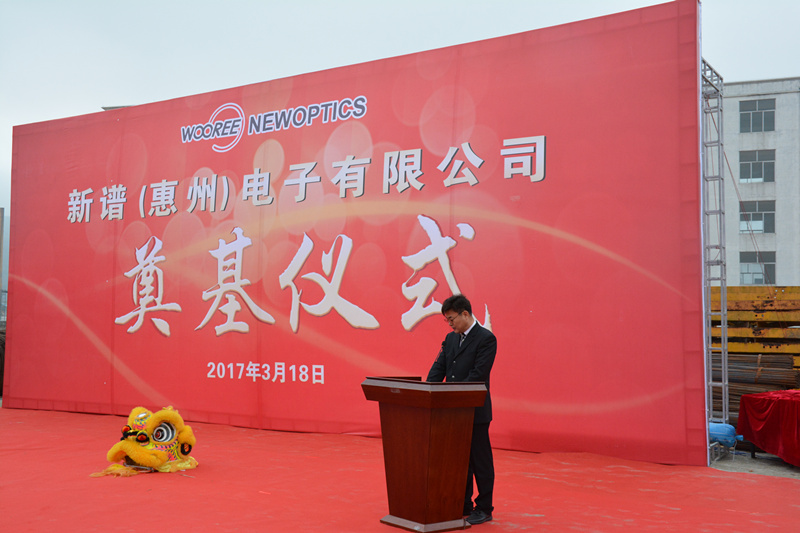 2017年3月18日,新谱(惠州)电子有限公司项目签约暨奠基仪式在泰美镇隆重举行,中文博彩平台副县长潘燕梅,泰美镇党委书记郑展基,泰美镇镇长陈灿林,中文博彩平台商务局领导,新谱(广州)电子有限公司高层,泰美镇班子成员、副科以上领导干部,以及镇属部门负责人出席了本次仪式,共同见证了这一历史性的时刻。