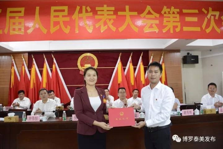 会议最后依法补选1名副镇长。按程序依法提名候选人、提交代表讨论酝酿、依法确定候选人、确定监票计票人、代表依法投票等环节后,泰美镇党委委员刘元轩同志全票当选为泰美镇人民政府副镇长,赵谊莉主席为刘元轩同志颁发了当选证书。县人大张学文副主任对本次大会的胜利召开以及新当选的刘副镇长表示祝贺,并就下来乡镇人大和镇政府工作作了讲话。