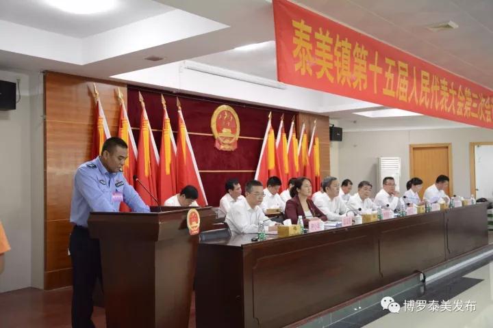 10月26日,泰美镇第十五届人民代表大会第三次会议顺利召开,本次会议为期一天。我镇本届人大代表有64人,请假2人,实到代表62人,符合开会法定程序。会议主要议程有:一、听取和审议“封边锁喉”项目建设工作报告;二、补选泰美镇人民政府副镇长1名;三、代表履职培训。县人大常委会副主任张学文、县人大常委会委员、选联任工委主任陈振清、县委组织部干部科科长谢秀辉等应邀出席了本次大会。
