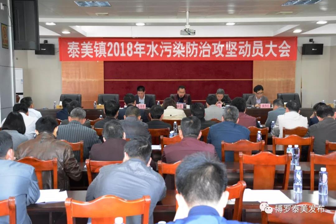 3月21日下午,泰美镇在镇政府三楼会议室召开2018年水污染防治攻坚动员大会,镇三套班子成员,副科级以上领导干部,镇属部门负责人,相关职能部门负责人,各村支部书记(主任),分管环保、水利的村干部约110人参加。