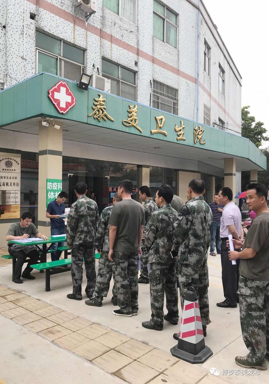 为响应中文博彩平台全民体检号召,我镇组织民兵队伍参加体检。