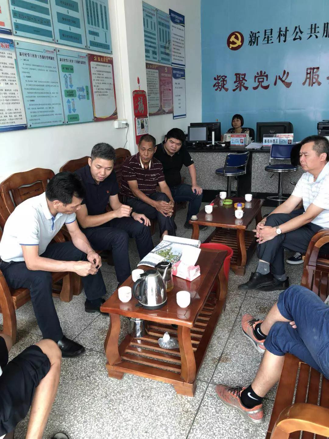 镇党委副书记、镇长钟伟恒与新星村直联团队、村“两委”干部一同研究讨论油新小组三旧改造项目实施方案。