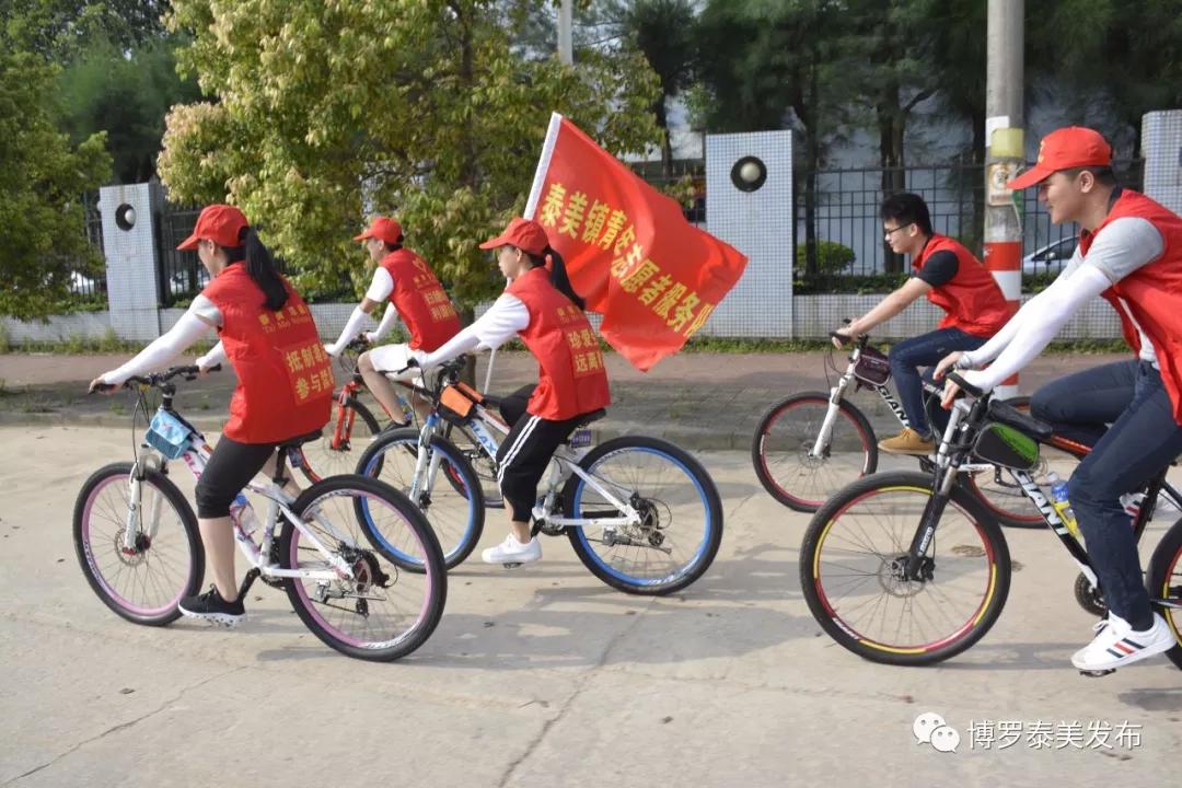 活动中,骑行队伍穿梭在泰美的主干道上,途经新塘村、泰美中学、宝山职校、良田村等,全程约15公里。为了起到更好的宣传效果,志愿者服背后贴上了“禁毒工作·人人有责”、“扫除毒害·利国利民”、“吸毒一口·掉入虎口”等醒目的禁毒宣传标语。途径人流密集处时,志愿者们便停下车来给周围的群众发放《戒毒条例》、《禁毒法宣传手册》等禁毒宣传资料。