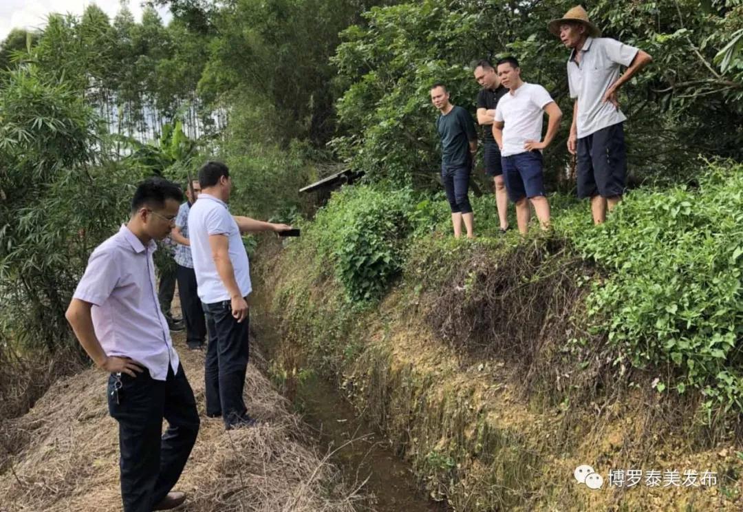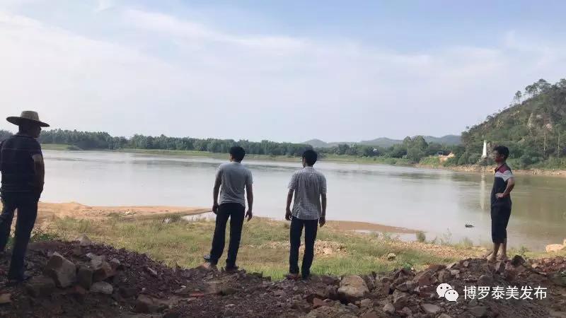 盘沱村直联团队、村“两委”干部一同巡查东江河盘沱段,检查水环境污染情况。
