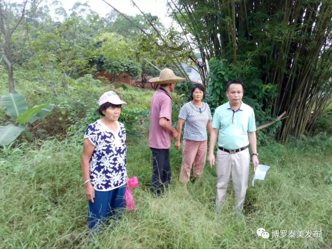 镇党委委员陈功儒与新塘村“两委”干部、征地办工作人员一同协调解决群众反映的征地问题。
