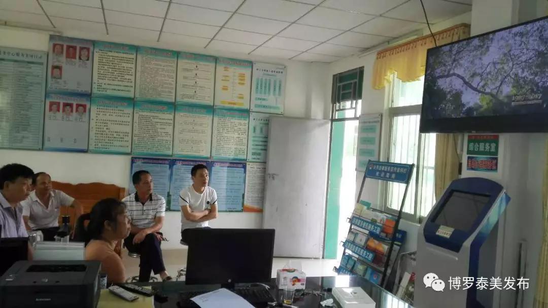 岭子头村直联团队与村“两委”干部一同在村委会收看广东省远程电视教育节目。
