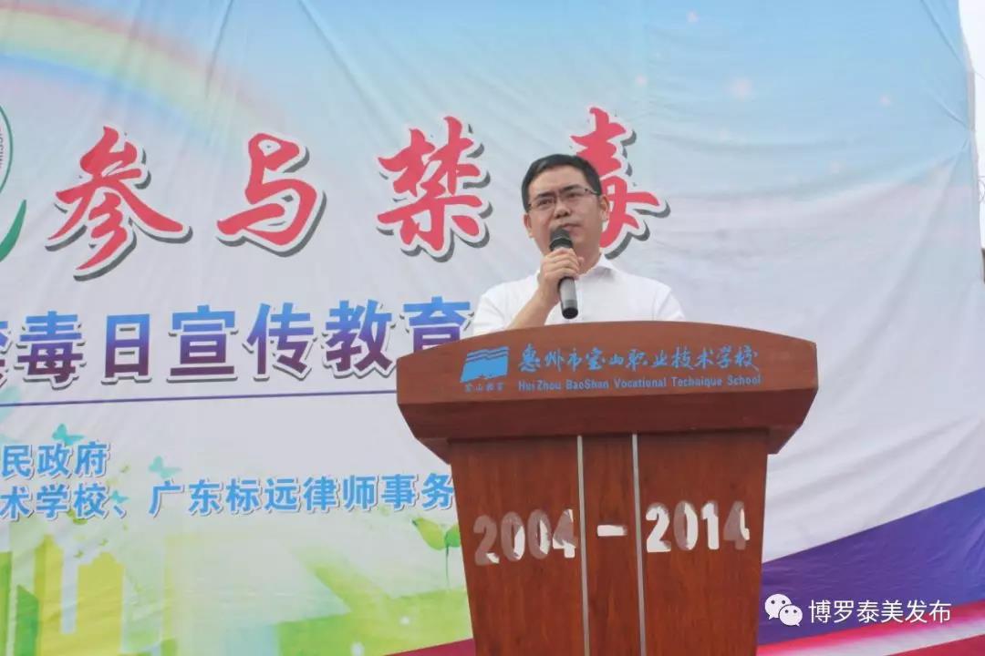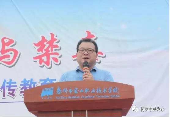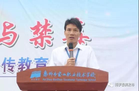 惠州市宝山职业技术学校副校长徐闯首先作了致辞,要求同学们一定要把毒品危害铭记于心,做到拒毒、防毒、不吸毒,并积极参与禁毒斗争。