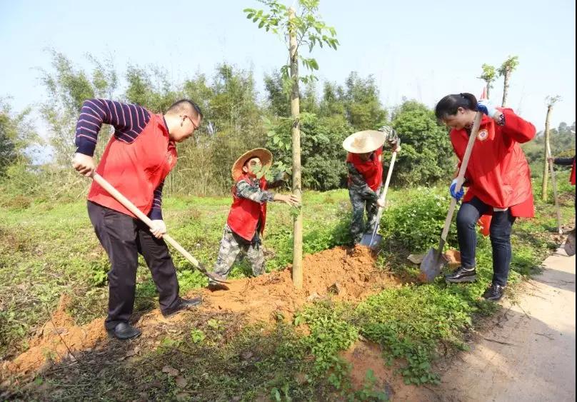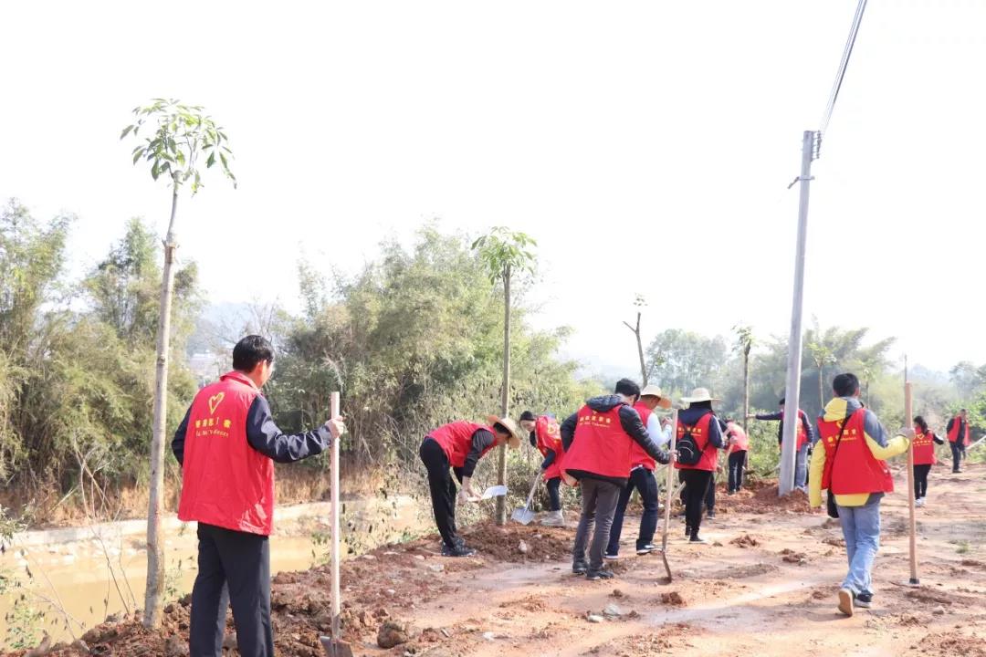 植树活动现场一片热火朝天的景象,志愿者们挥锹铲土、填坑夯苗,培育新土。大家互相协助,你扶树来我填土,植树过程中还不时交流分享对推动绿色发展,打造美丽乡村的看法。