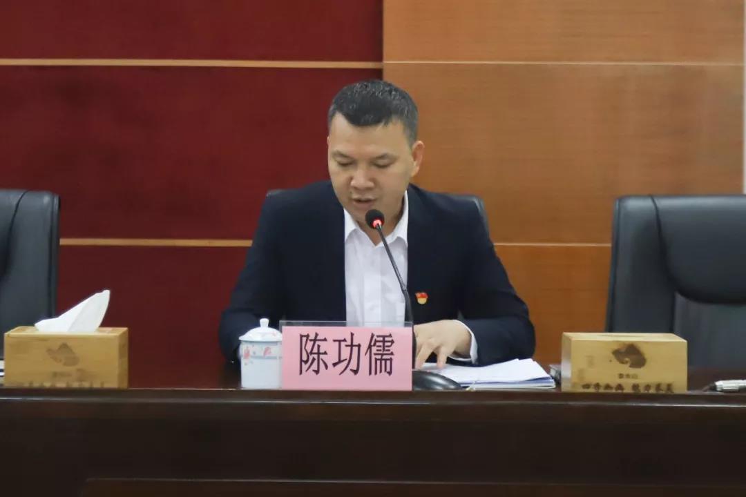 镇党委委员陈功儒向与会人员宣读《关于2018年度村级工作绩效考核情况的通报》并传达学习《惠州市强化村党组织领导核心地位暂行办法》等相关文件精神