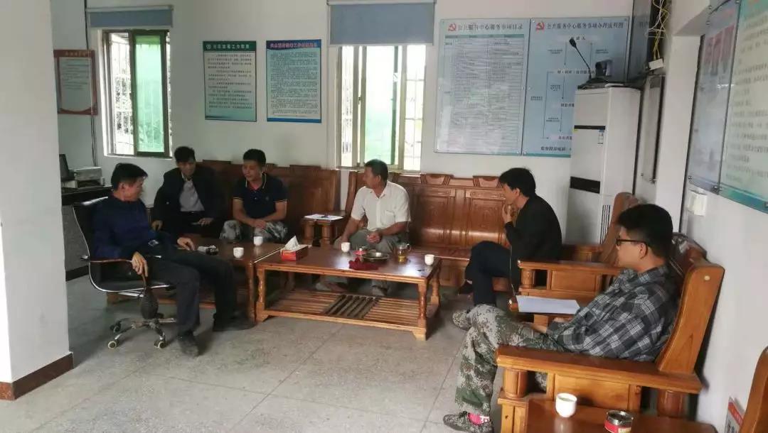 良田村直联团队与村“两委”干部一同在村委会调解群众土地矛盾纠纷。