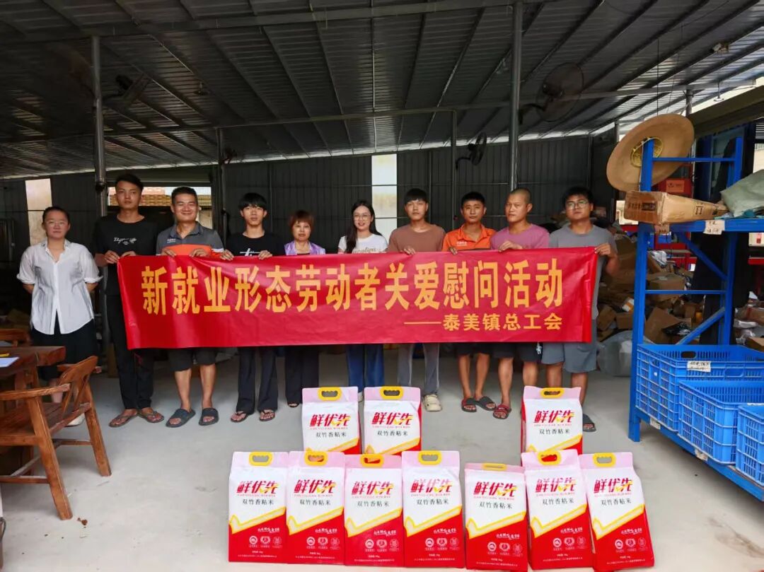 为切实将党和政府的关怀以及工会组织的温暖送到新就业形态劳动者心坎上,近日,泰美镇总工会组织开展了新就业形态劳动者慰问活动,聚焦快递员、外卖配送员、物流货运司机、网约车司机等新就业形态劳动者群体,为他们送上了大米、面条等生活必需品。
