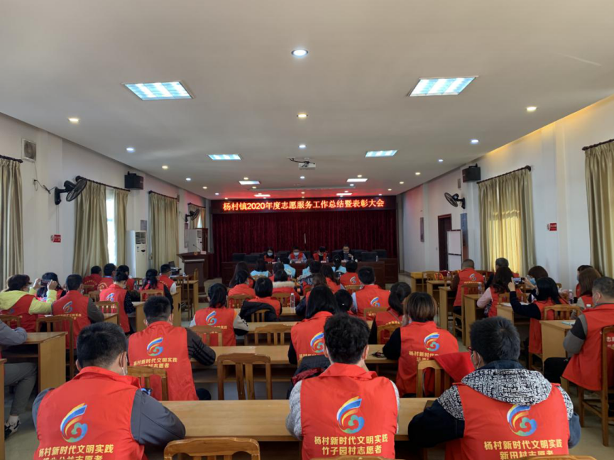 为表彰先进,充分发挥先进典型的示范引领作用,进一步激发全镇广大干部群众参与志愿服务活动的热情,推进杨村镇新时代文明实践志愿服务工作健康发展,1月21日上午,杨村镇在文化站四楼会议室召开杨村镇2020年度志愿服务工作总结暨表彰大会。镇党委副书记黄海东、镇党委委员黄亦奎,各村(社区、林场)新时代文明实践站联络员、各志愿服务队队长及志愿者参加会议。