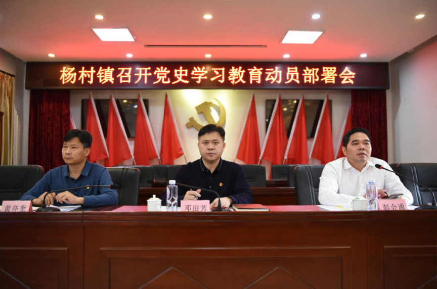 镇党委副书记、镇长彭会通在会上传达学习了习近平总书记在党史学习教育动员大会上的重要讲话精神以及省、市和县关于党史学习教育的会议精神,要求全体党员干部提高政治站位,不忘初心、牢记使命,切实把思想和行动统一到总书记、党中央重大决策部署上来,务求取得实效,将学习教育成果转化为推进杨村各项事业高质量发展的坚强信心和强大动力。