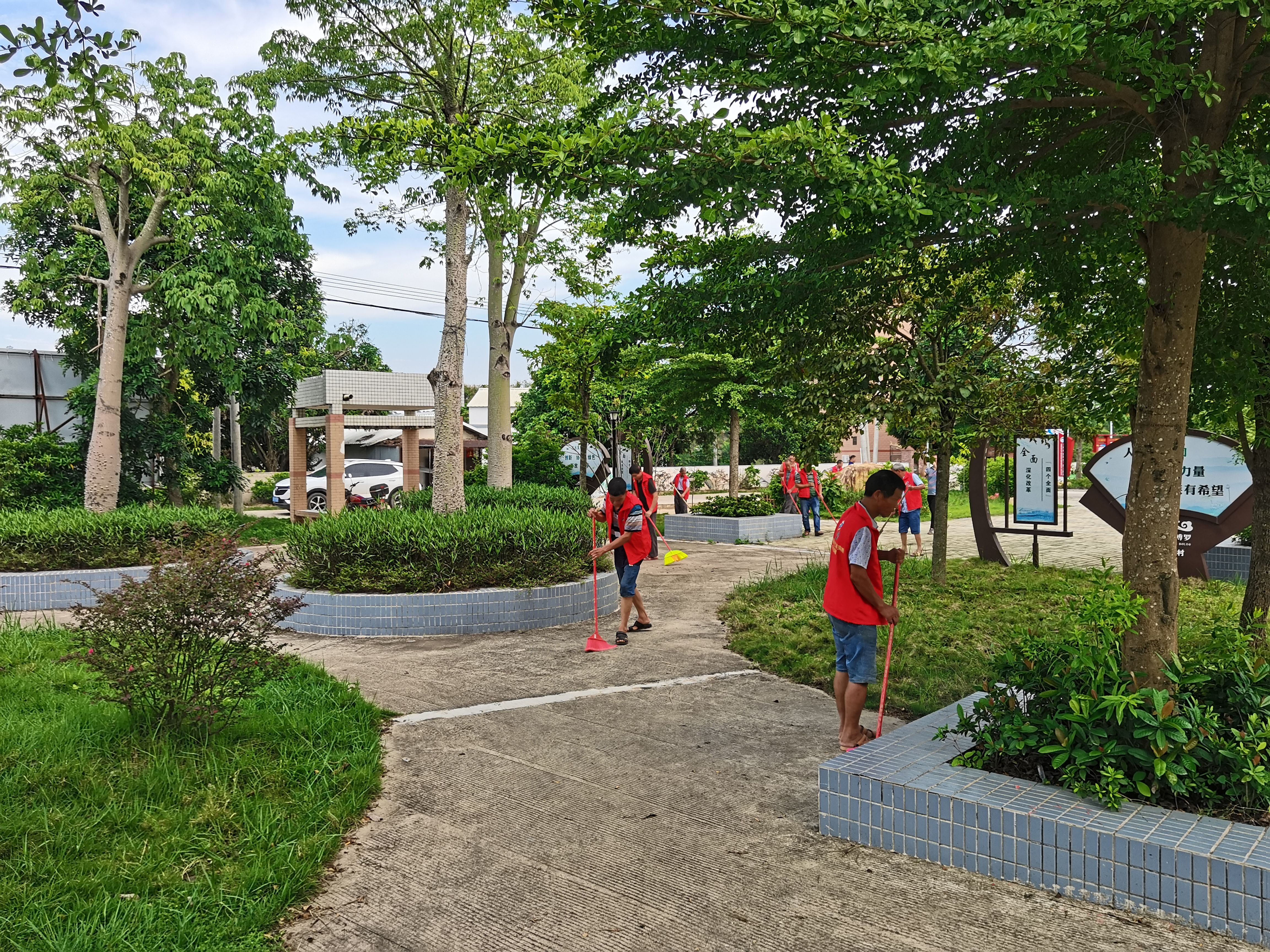 各村(社区、林场)纷纷响应号召,到处是一派火热的劳动景象,村组干部在各自的责任路段及村庄内开展全面细致的环境卫生大扫除,清除裸露垃圾,清除乱贴乱画的小广告,清洗垃圾容器,对各个卫生死角进行彻底清理,营造干净、整洁的乡村环境。