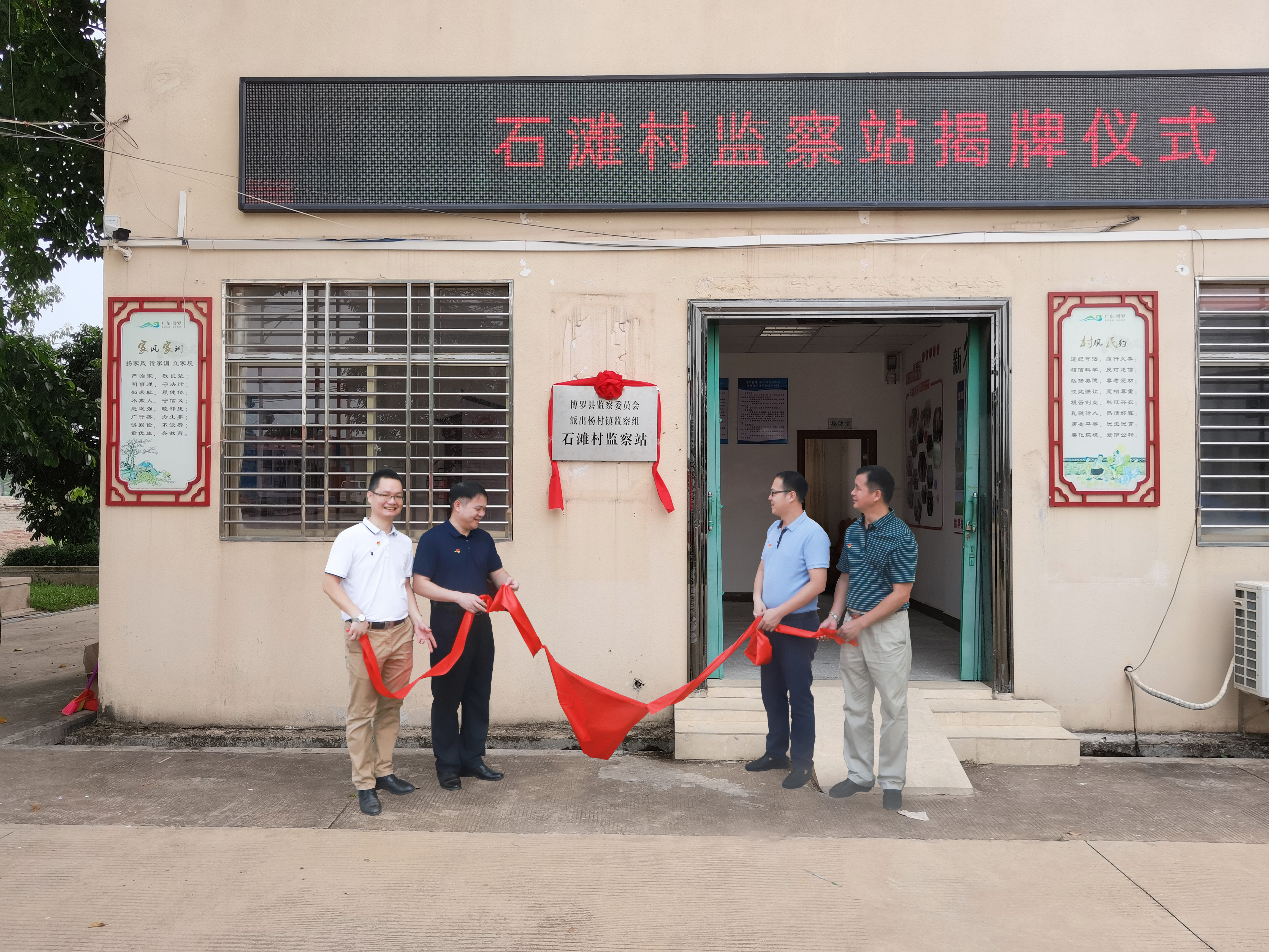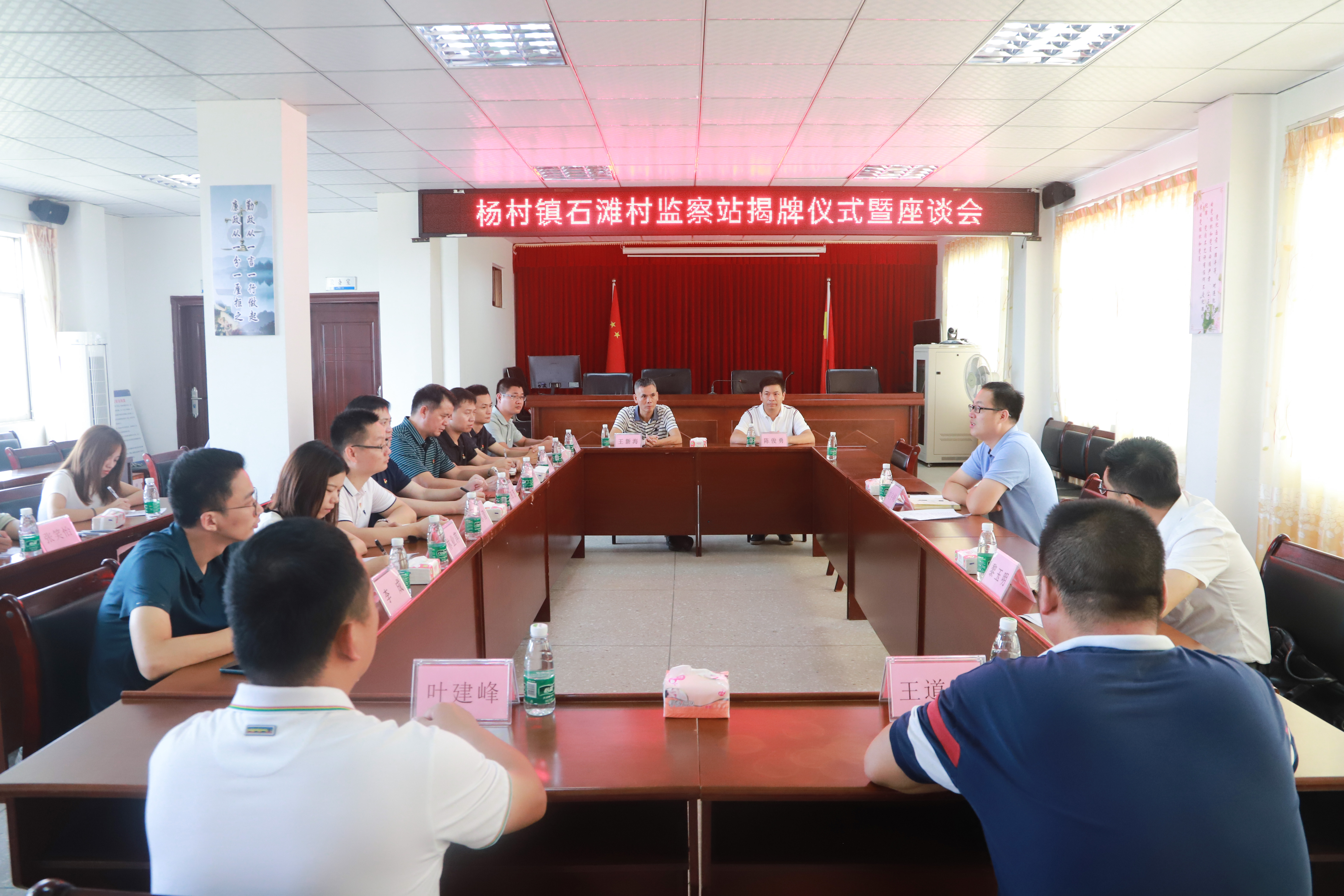 在实地察看了石滩村监察站,详细了解监察站人员配备、场地建设以及办公经费保障等情况后,刘宇峰、邓田芳等人共同为石滩村监察站揭牌。