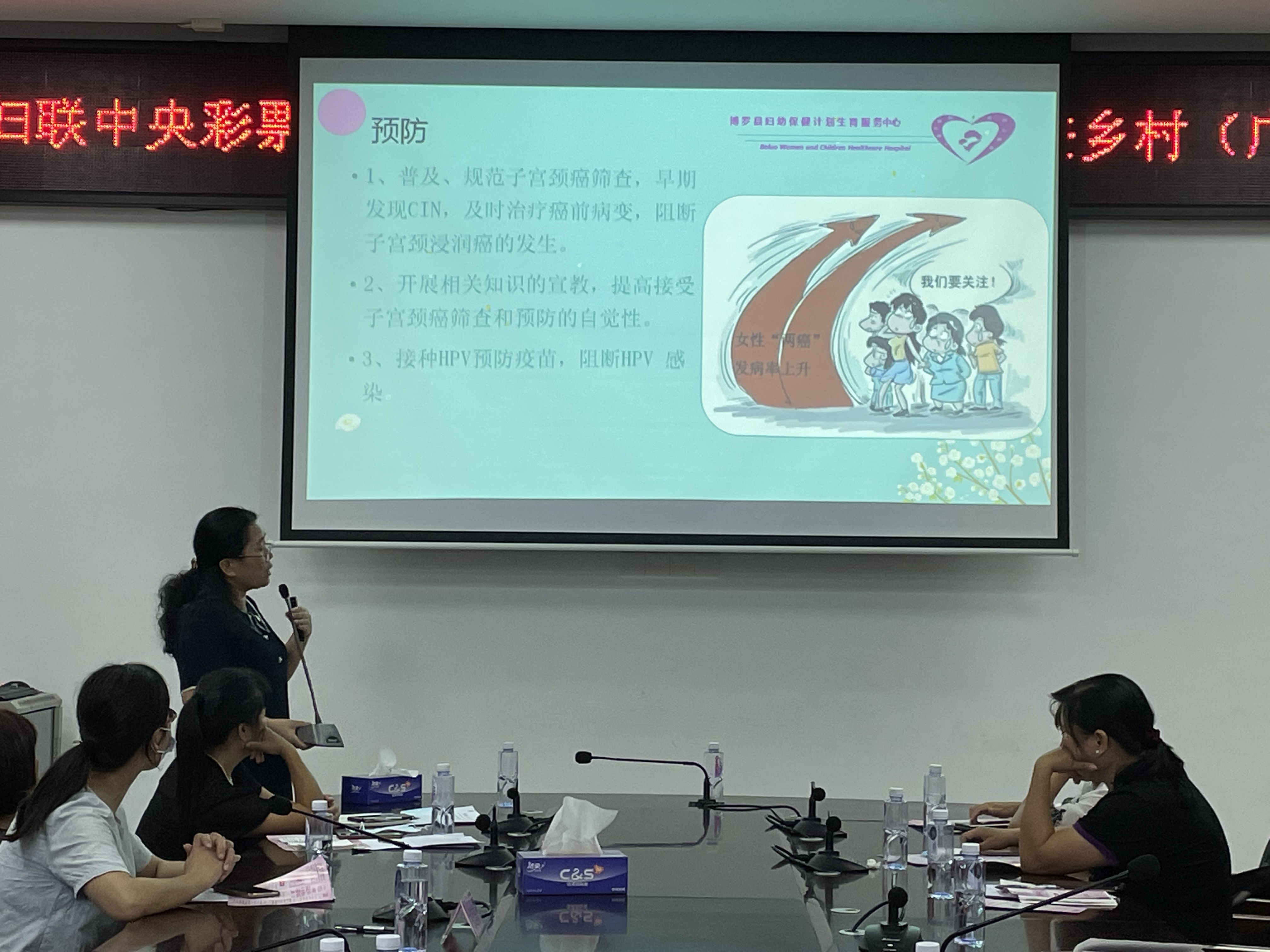 随后,王少蕾院长及陈进萍主任分别从“两癌”的致病因素、发病原因、临床症状以及如何预防等方面,进行了详细的讲解,对下来的筛查工作进行细致安排。