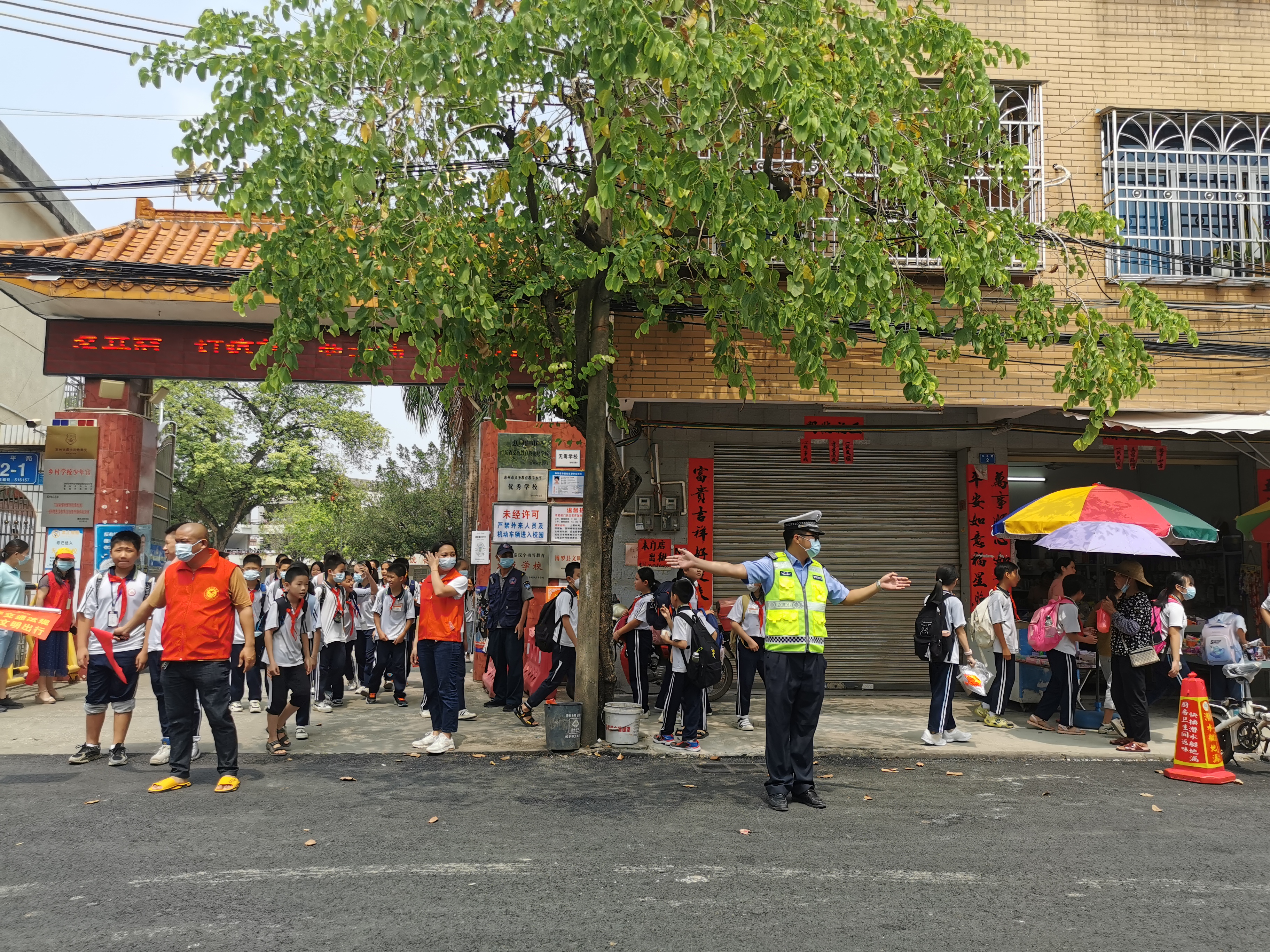 为缓解校园周边交通压力,确保周边秩序平稳,营造安全舒心的环境,9月19日中午,杨村镇组织交警、志愿者在杨村中心小学开展“暖心护学,为爱站岗”活动。
