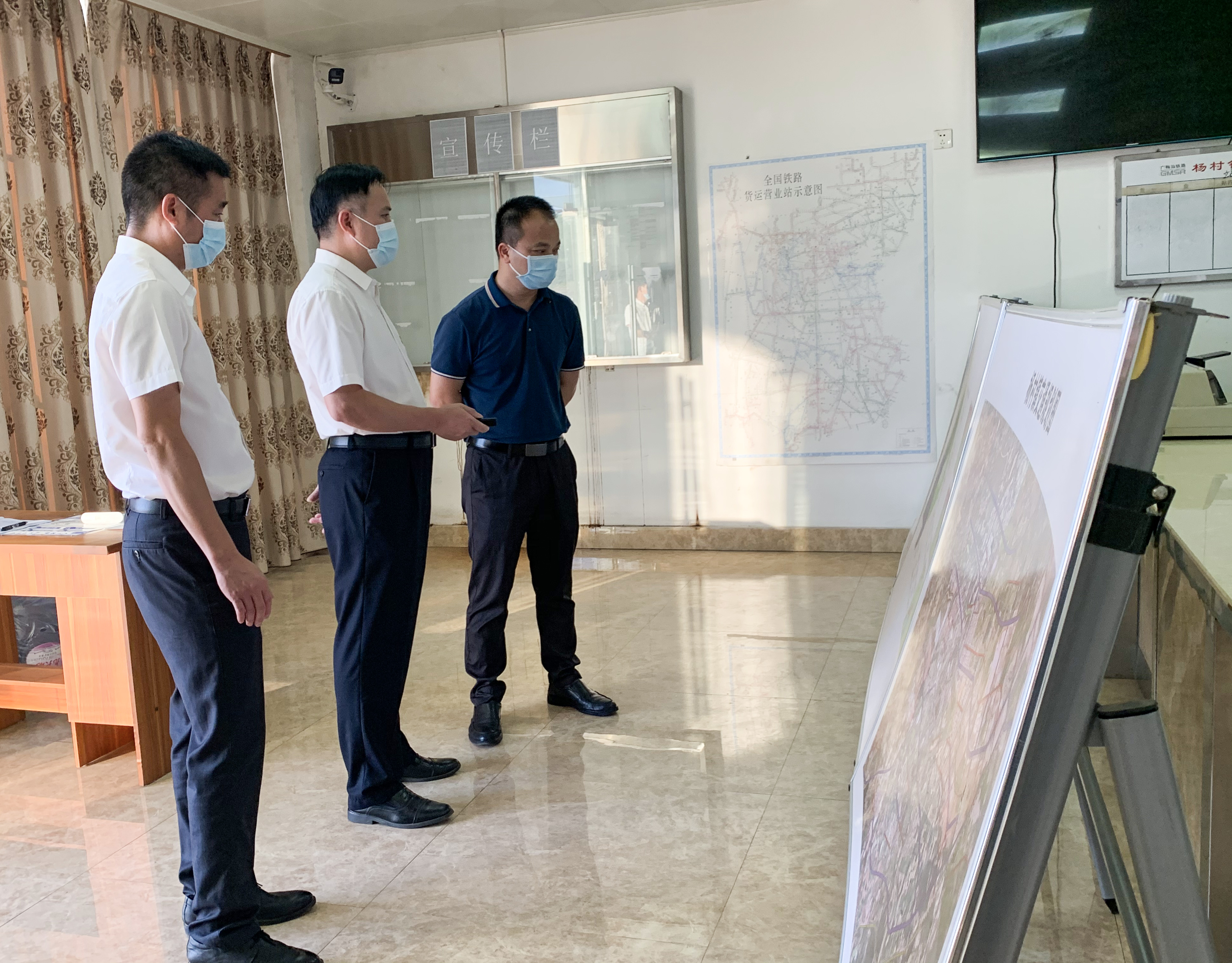 在广州货运中心杨村镇站铁路货场,魏燕雄一行通过听取汇报、查看台账等方式,实地了解、检查货场疫情防控工作落实情况。
