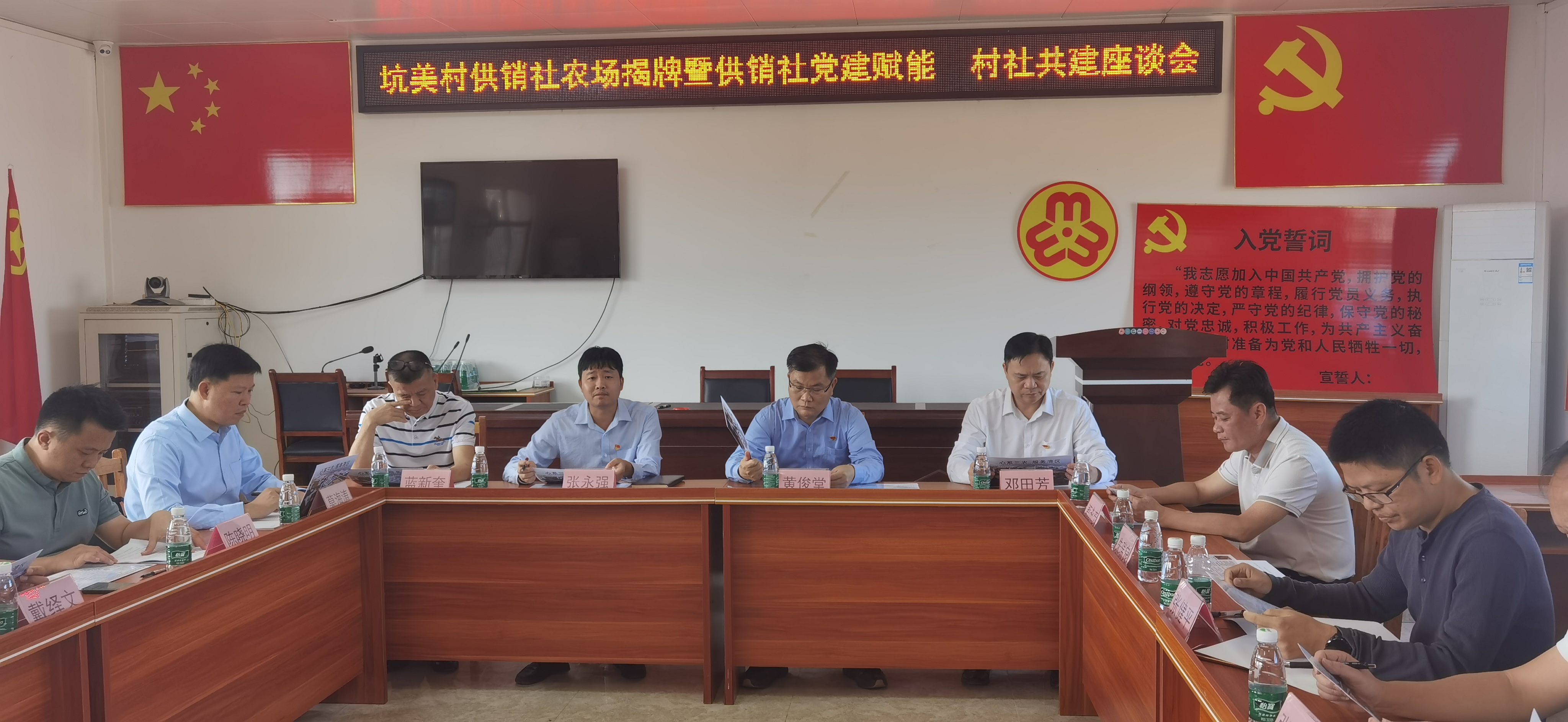 揭牌仪式结束后,黄俊堂一行在坑美村村委会议室召开党建赋能村社共建座谈会。