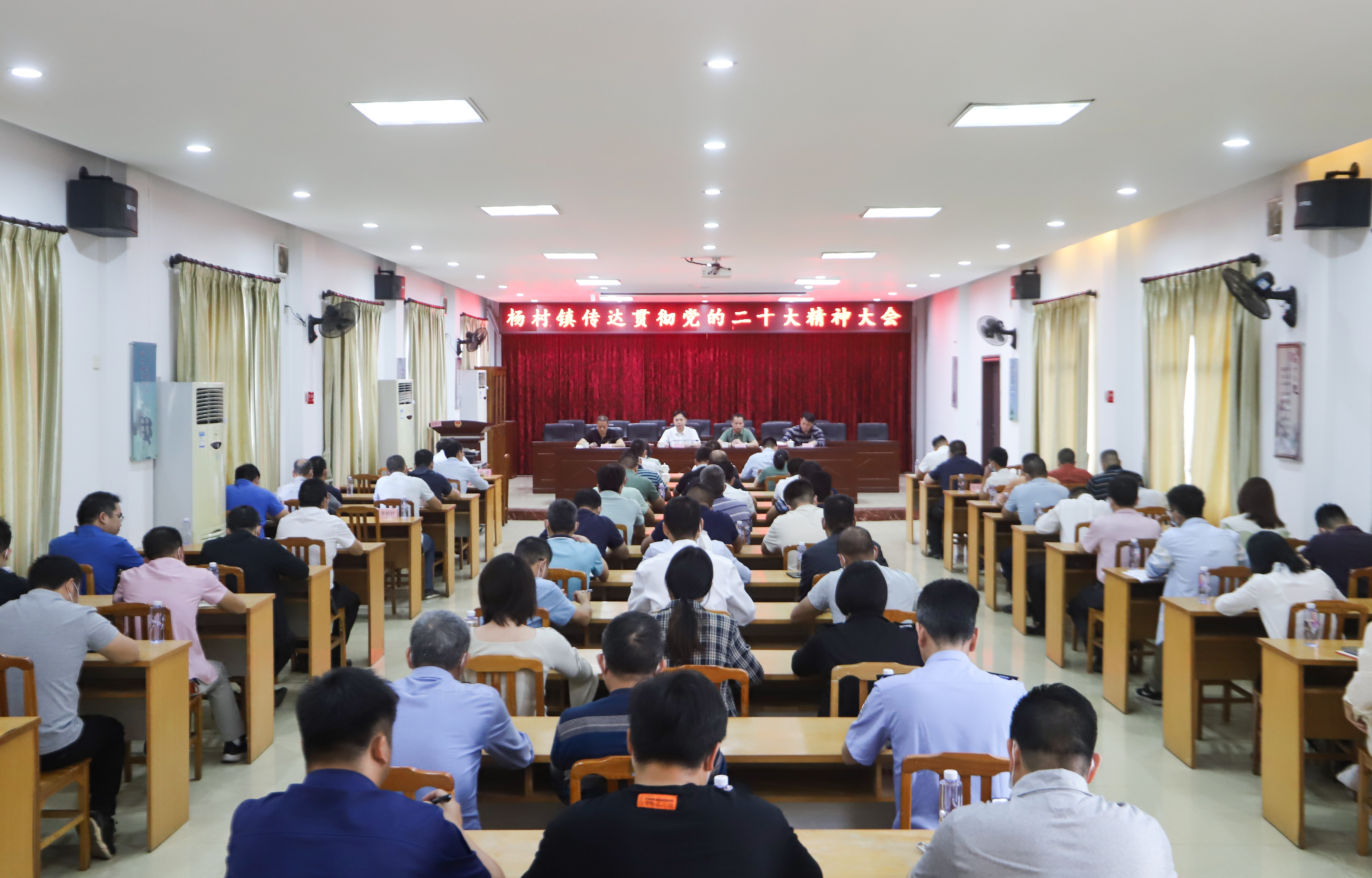 镇党委书记邓田芳指出,党的二十大是全面建设社会主义现代化国家新征程、向第二个百年奋斗目标进军的关键时期召开的一次十分重要的大会。全镇上下要进一步强化政治担当,全面、准确、深刻领会党的二十大精神的核心要义、丰富内涵和实践要求,切实把思想和行动统一到党的二十大精神上来,奋力开创杨村经济社会高质量发展新局面。