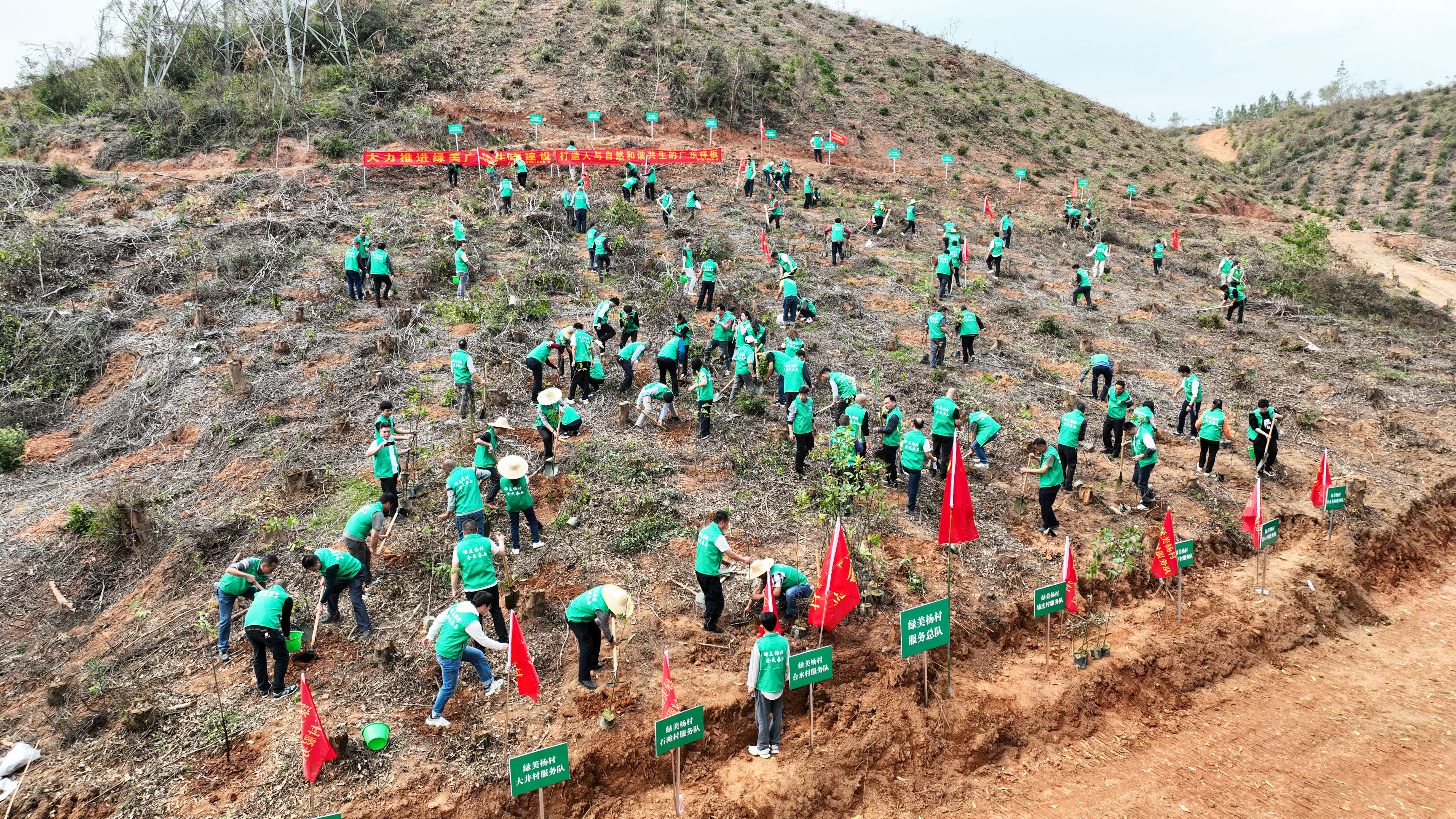 △梁振成等其他班子成员为“绿美杨村”村级服务队授旗