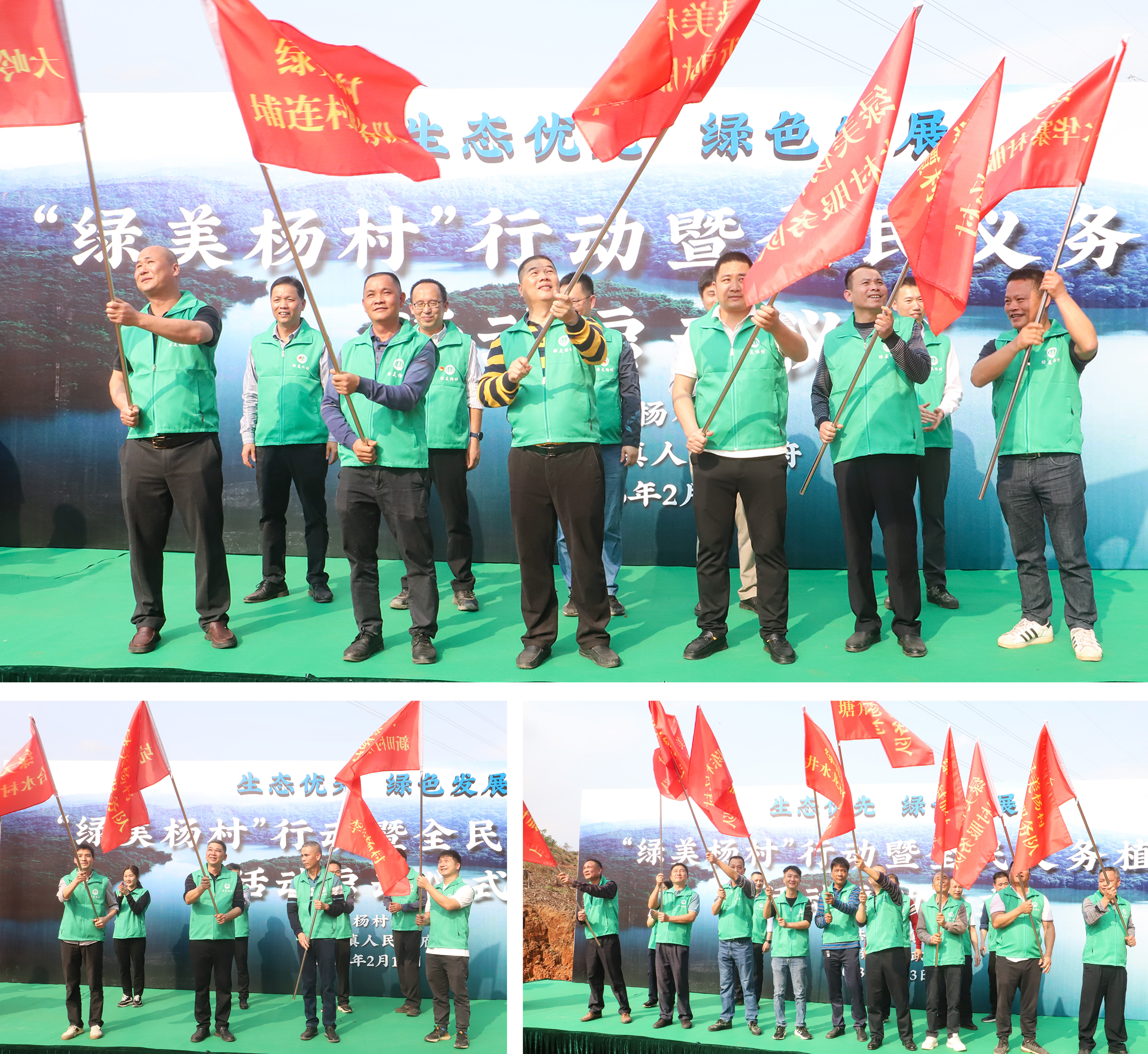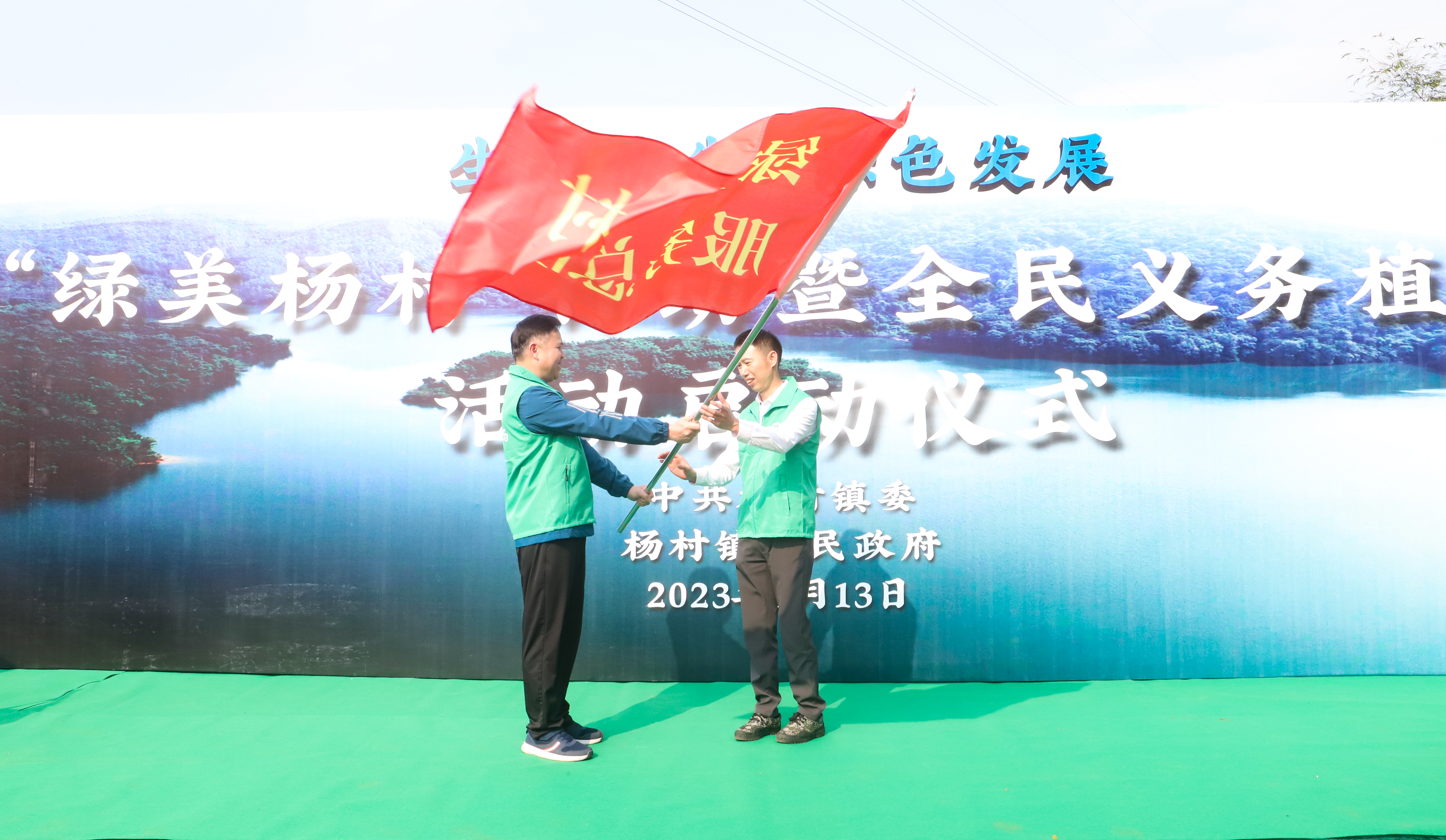 为深入推动“绿美杨村”行动,我镇成立了1支镇级服务总队和20支村级服务队。启动仪式上,邓田芳为“绿美杨村”镇级服务总队授旗,梁振成等其他班子成员为“绿美杨村”村级服务队授旗。