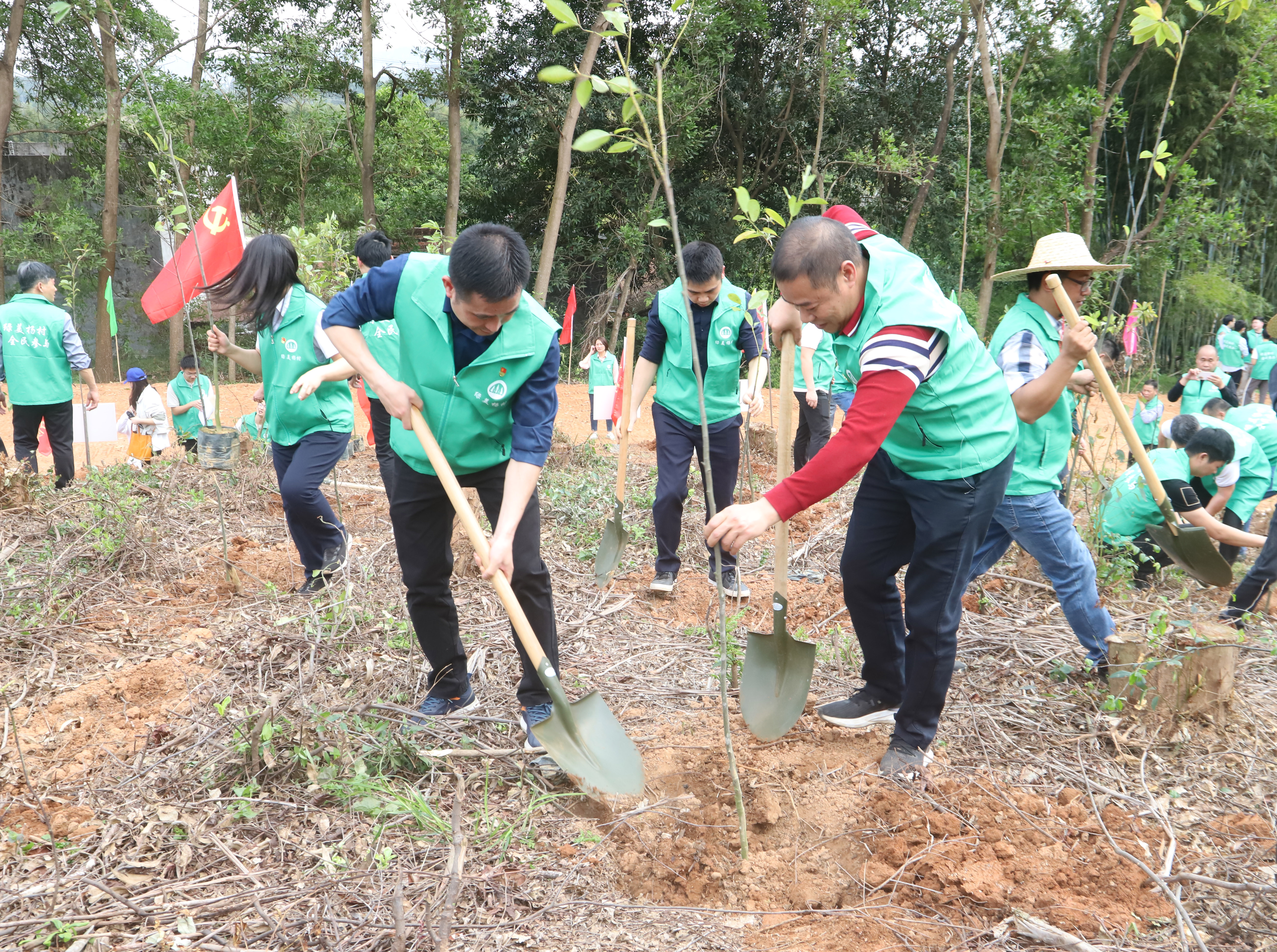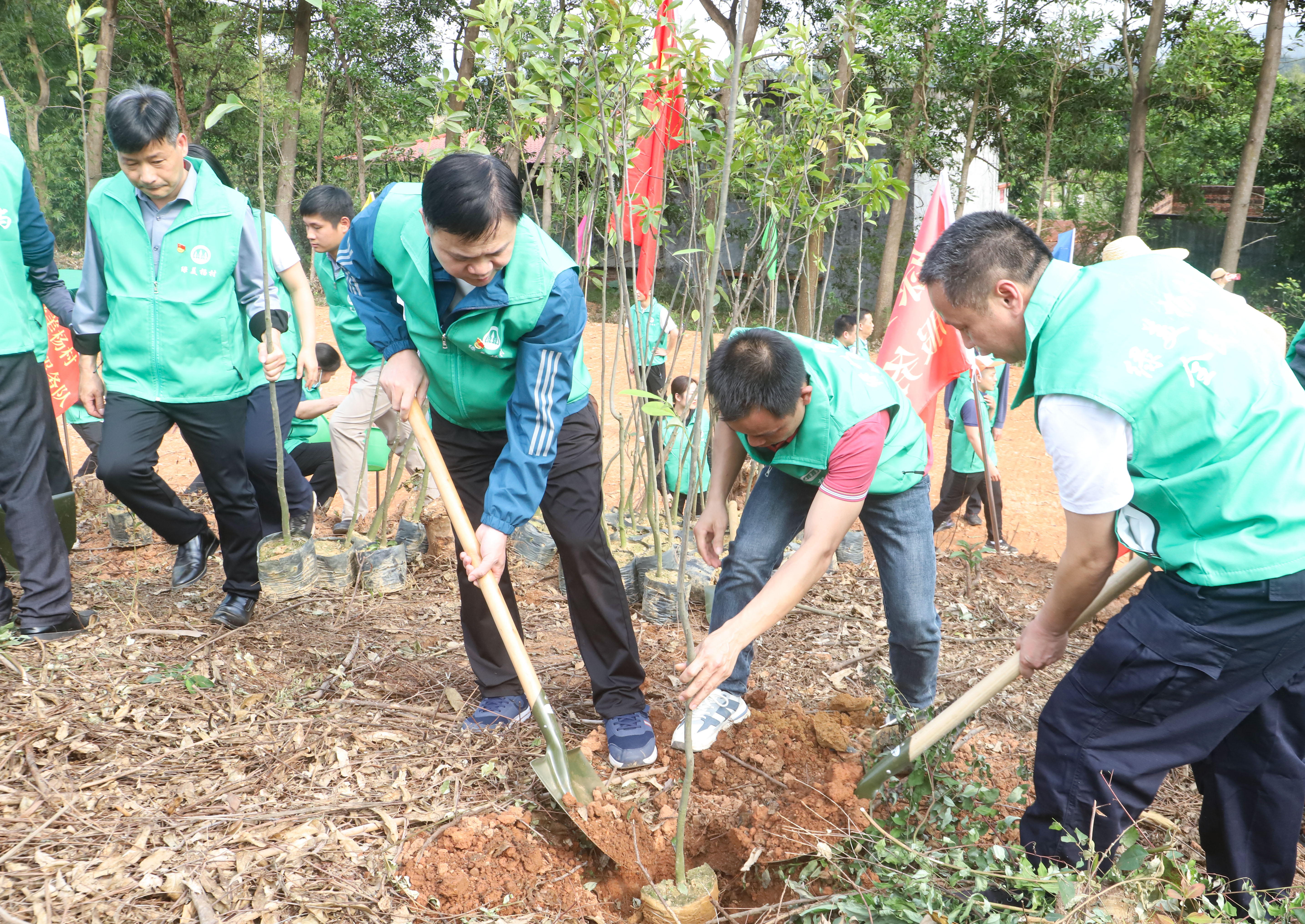在随后的植树活动中,邓田芳、梁振成带领班子成员,各村支书带领村组干部群众分别到镇村级植树点植树,共同栽下荷树、枫树、火力楠等苗木约500株,植树面积约30亩,以实际行动为杨村高质量发展增添绿色底蕴。