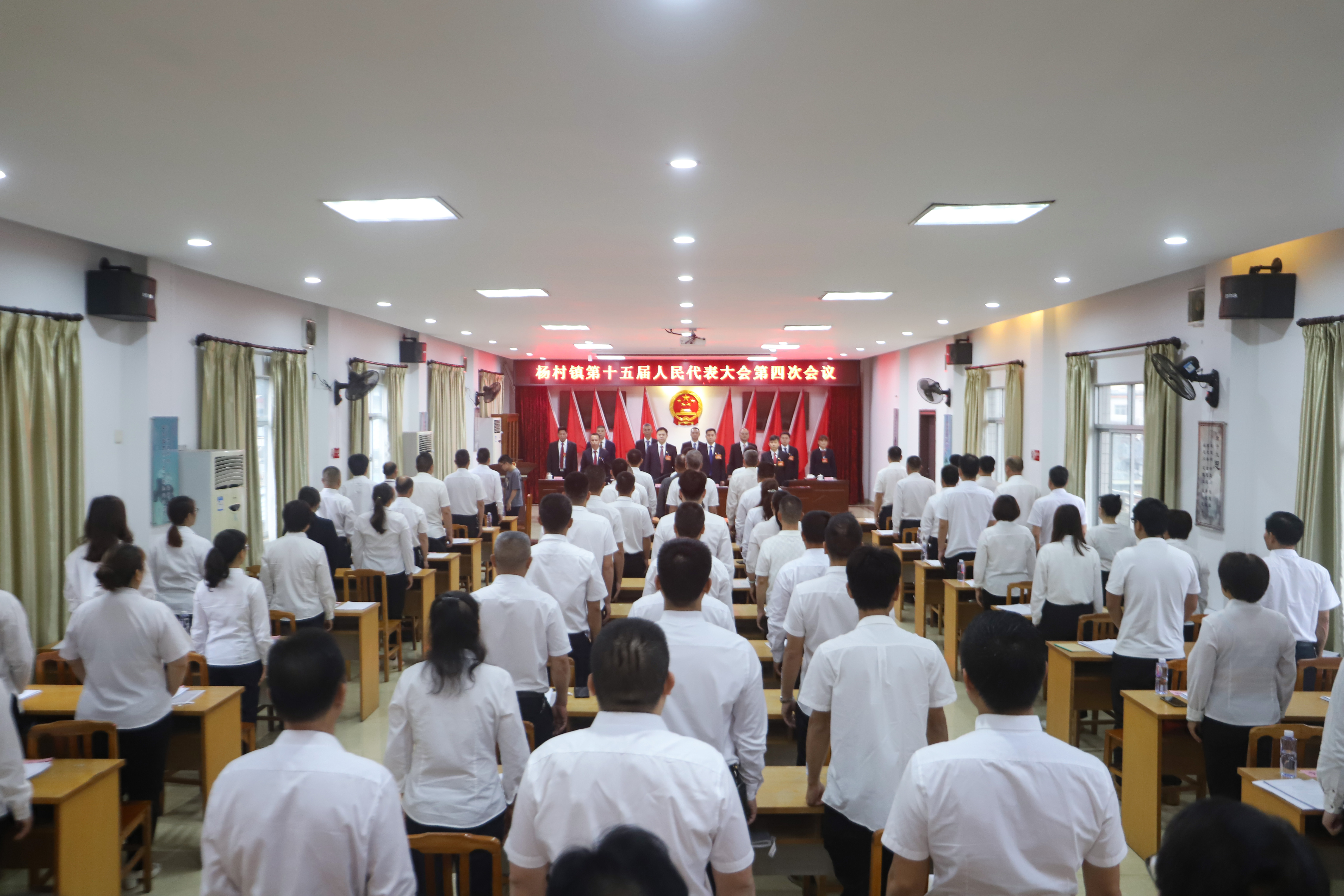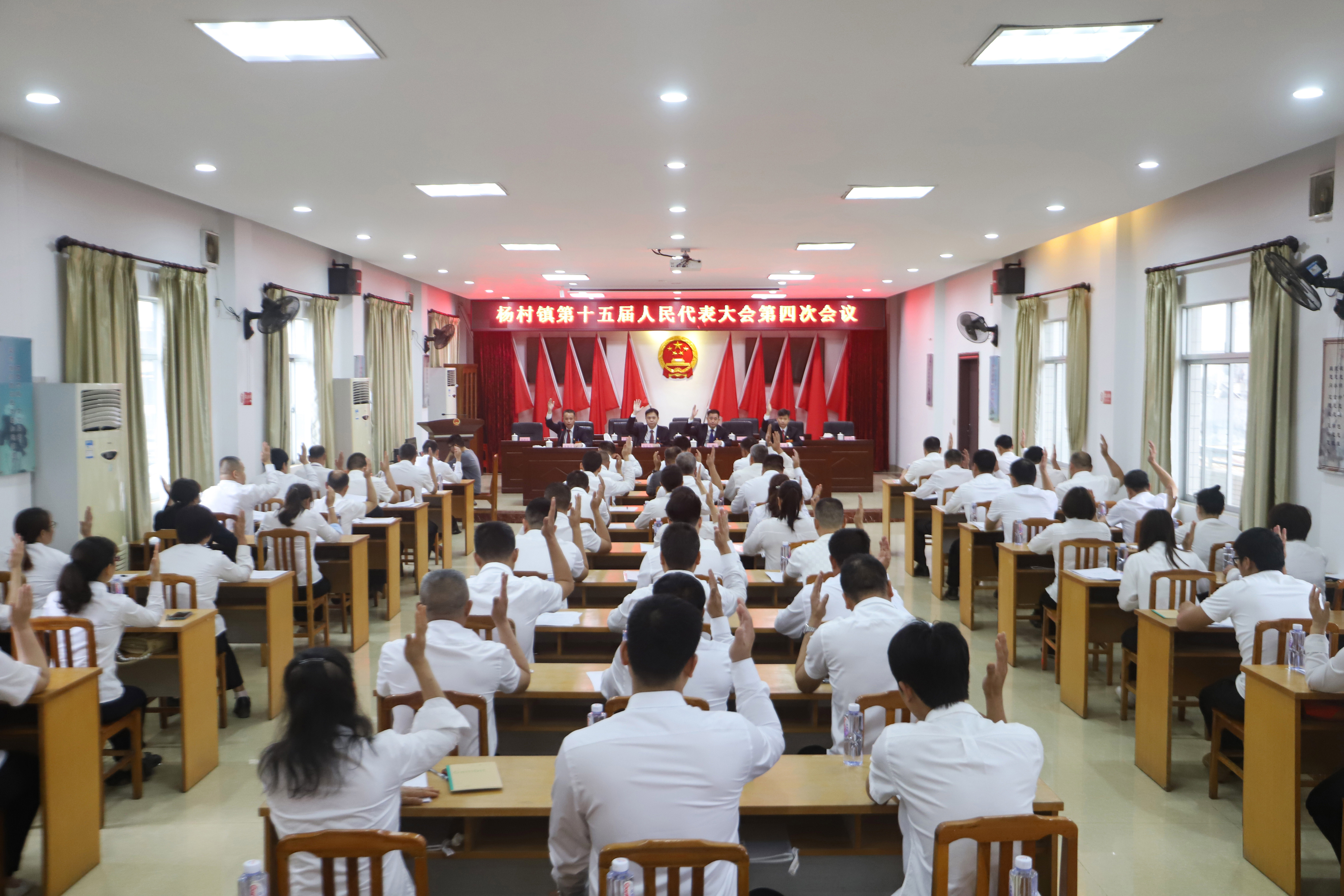 3月24日,杨村镇第十五届人民代表大会第四次会议在镇文化站召开。来自全镇各条战线上的73名镇人大代表齐聚一堂,共商新使命,共话新担当,共同绘就杨村高质量发展宏伟蓝图。