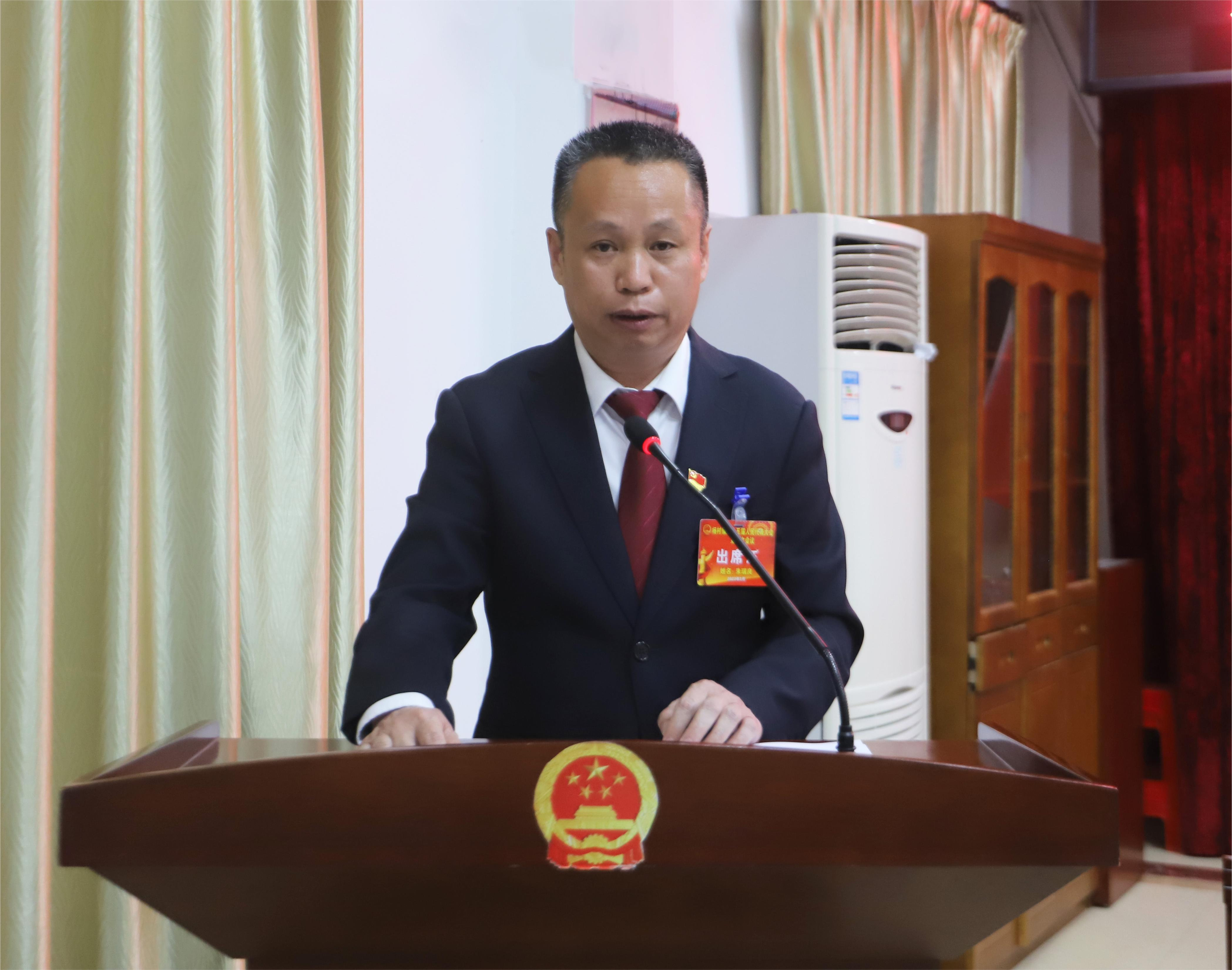 △镇人大主席朱瑞良作人大工作报告
