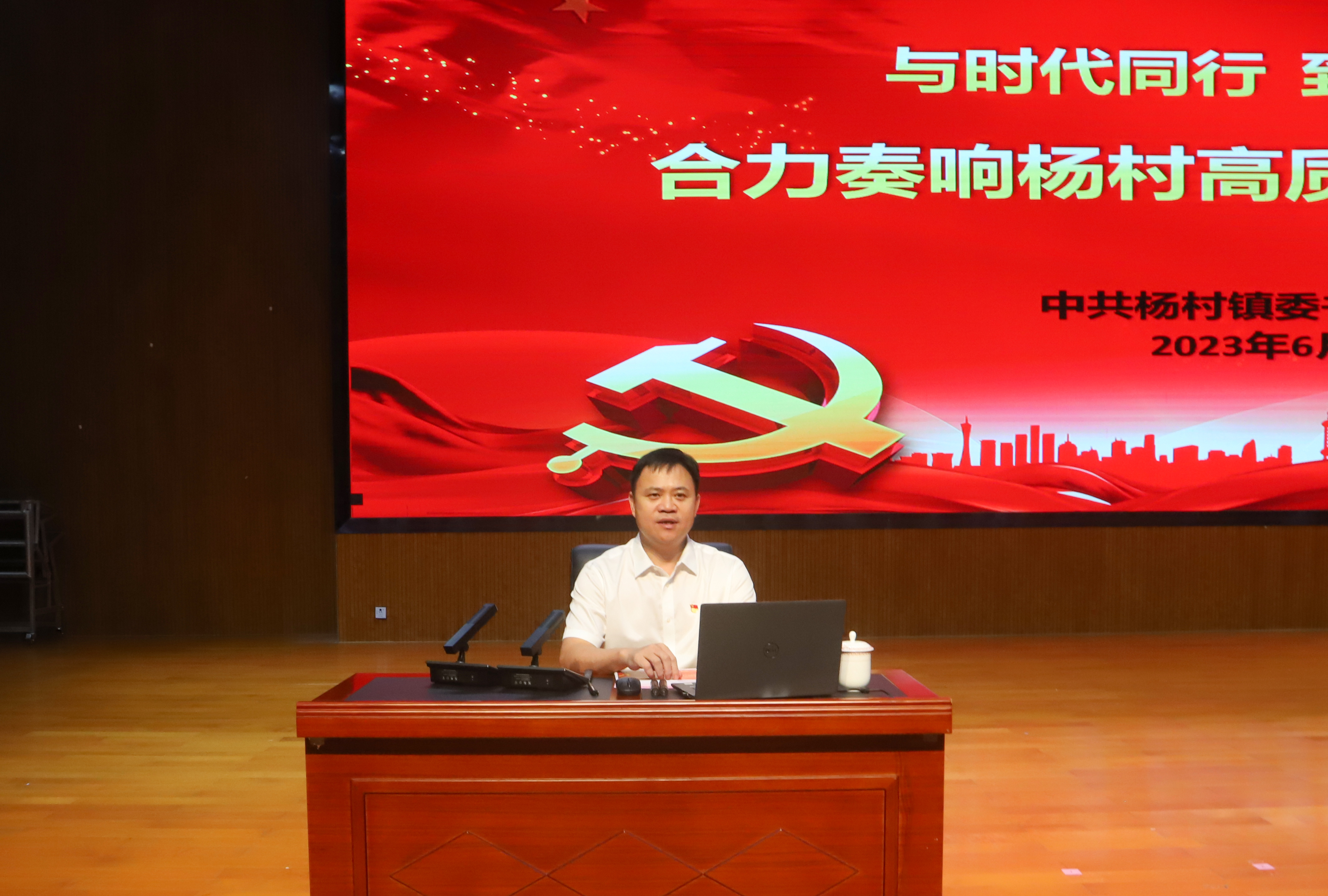 活动上,邓田芳以《与时代同行,到中流击水—合力奏响杨村高质量发展最强音》为主题,为参会党员讲了一堂生动的党课。邓田芳重点围绕“为什么推动高质量发展”“怎么样推动高质量发展”“拿什么推动高质量发展”等三个方面展开,就贯彻落实党的二十大精神、省委“1310”具体部署和市、县要求,推动杨村高质量发展作了深入浅出的讲解,动员和激励广大党员干部进一步坚定理想信念、弘扬正气、担当实干,为推动杨村高质量发展凝聚共识、积蓄力量。