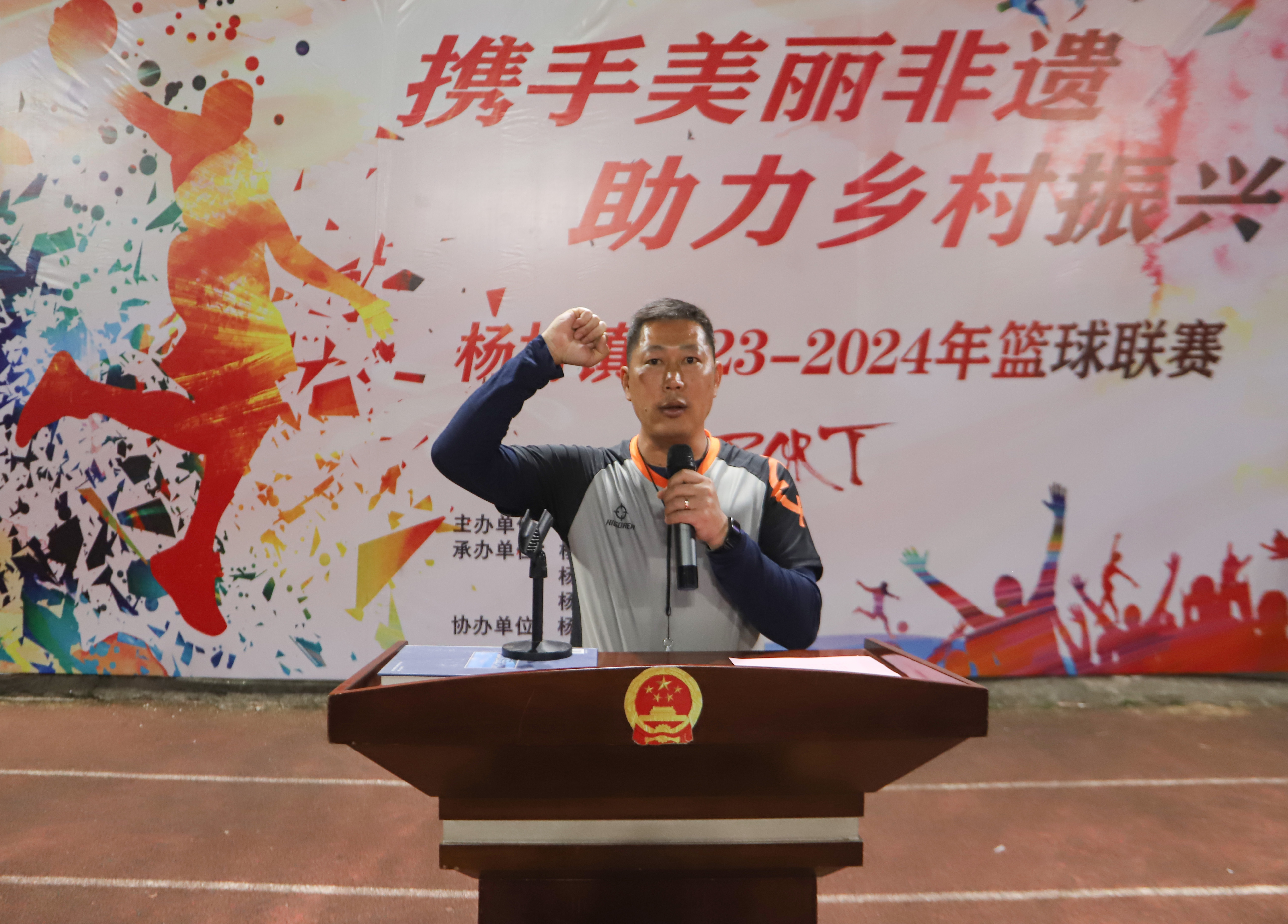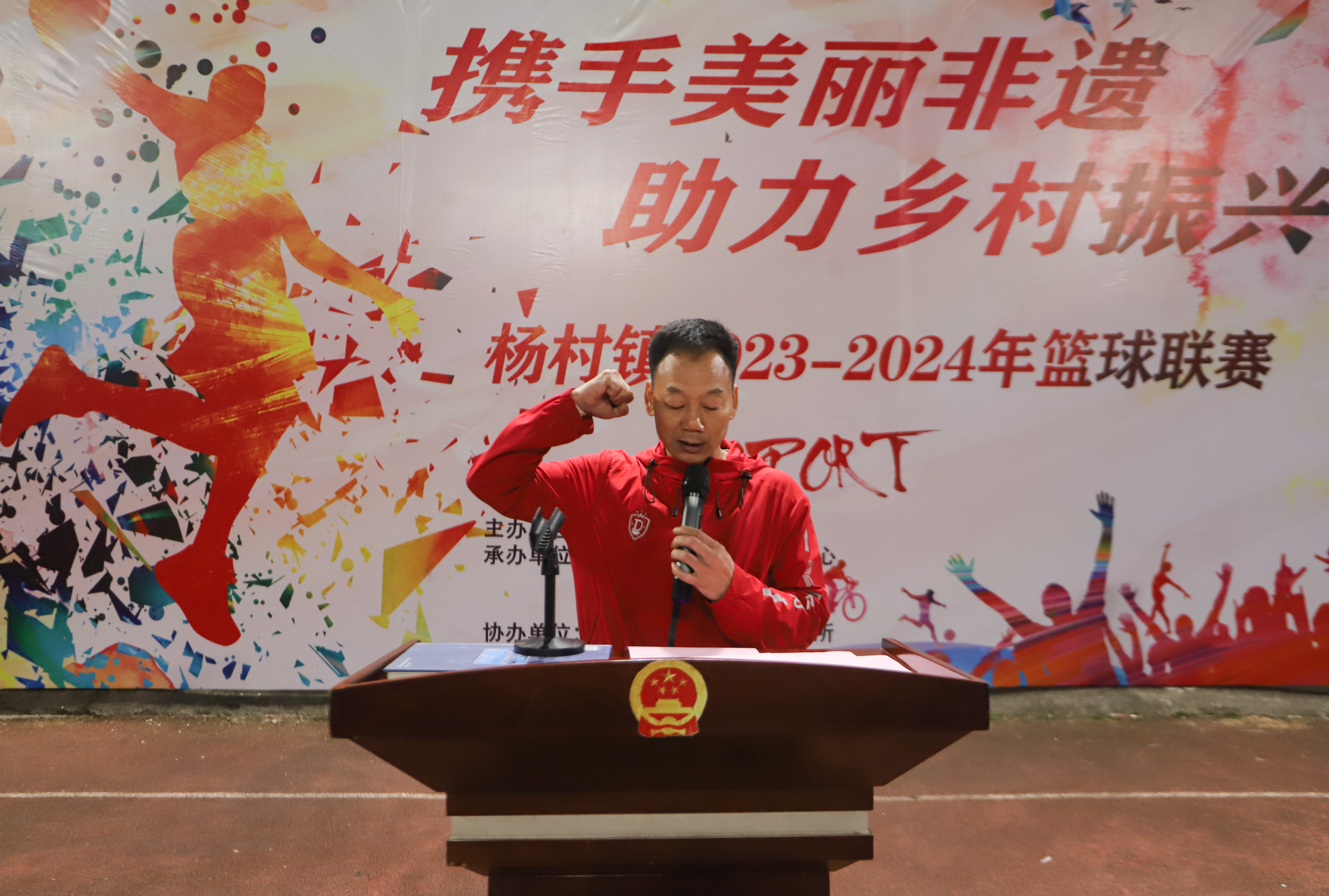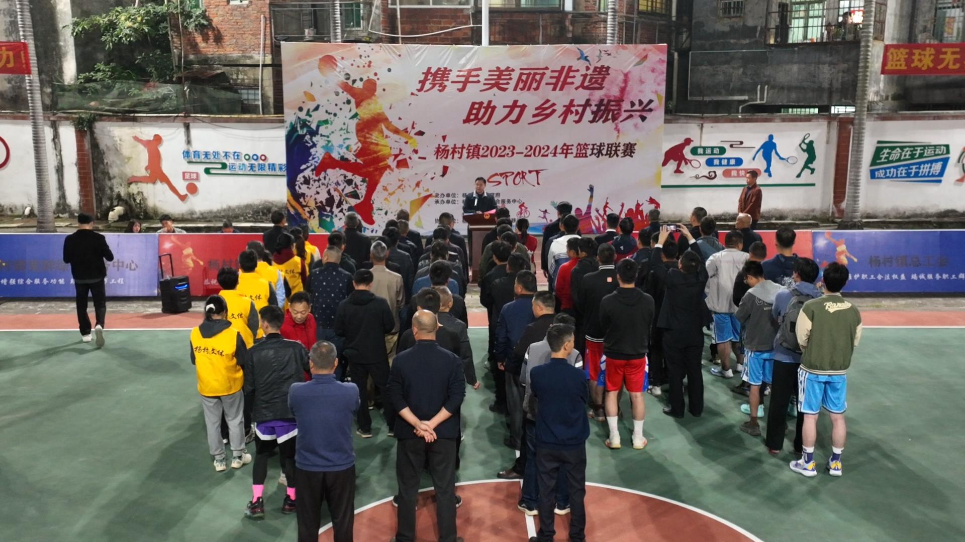 2024年1月2日晚,我镇举行“携手美丽非遗、助力乡村振兴”杨村镇2023-2024年篮球联赛,本次篮球联赛开幕式在杨村镇中心小学篮球场举行,镇党委书记邓田芳及部分镇领导班子、杨村镇篮球协会会长欧广州、各村(社区)书记、首轮开赛的四支参赛队伍、裁判员等出席开幕式。镇党委副书记、镇长梁振成主持开幕仪式。