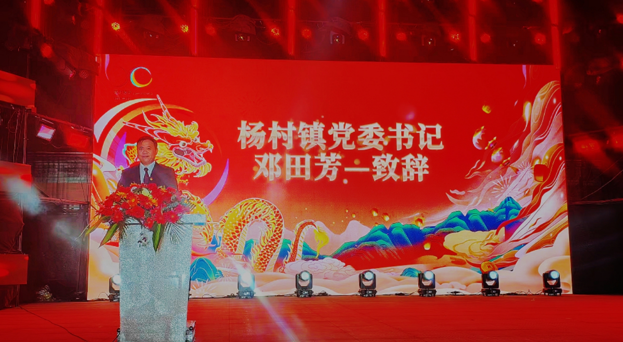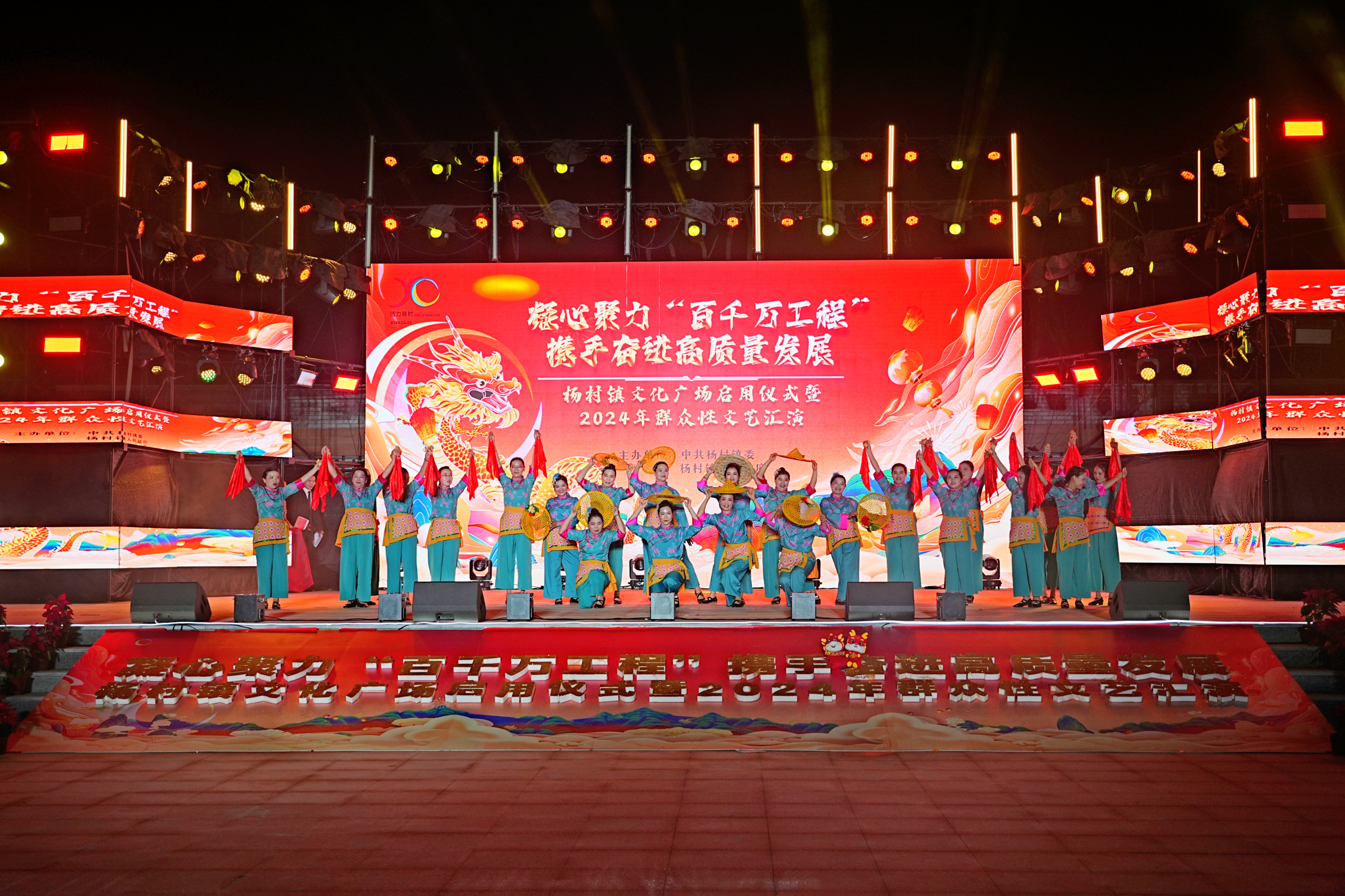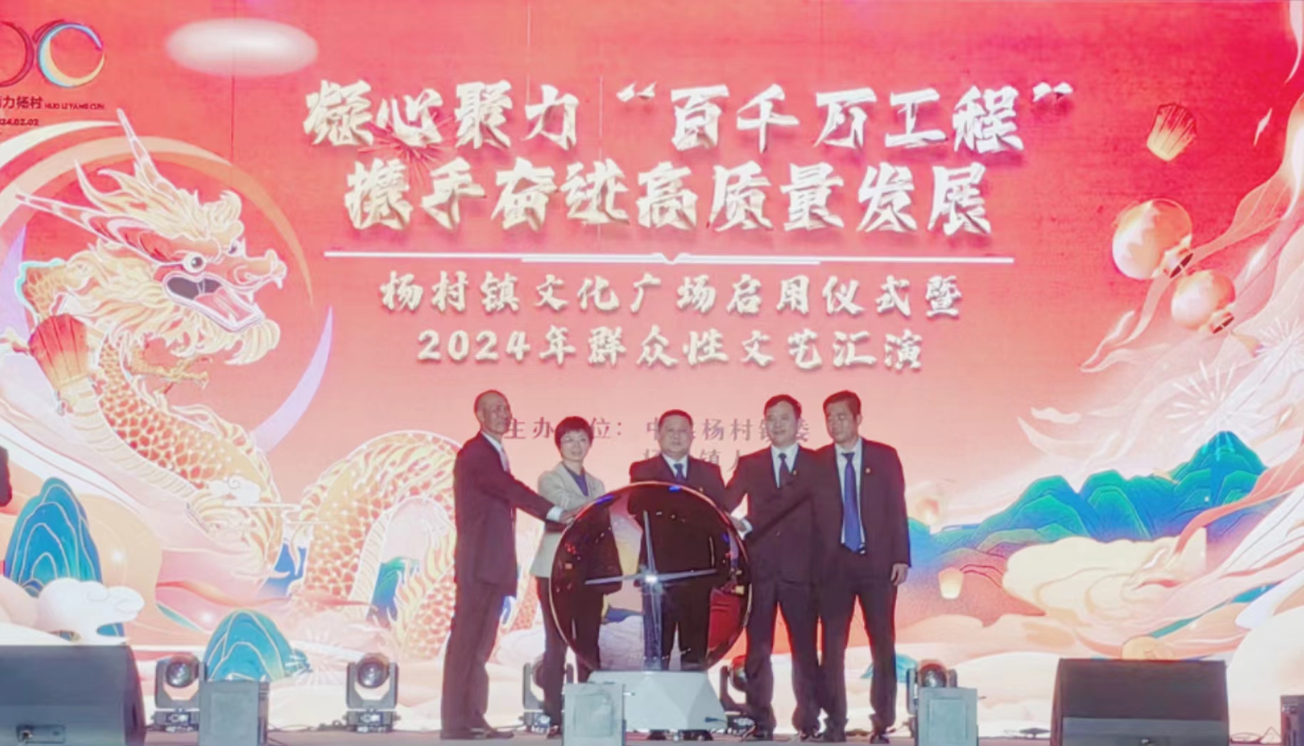 广场启用仪式开始,镇党委书记邓田芳作开幕致辞。他表示,杨村镇文化广场的落成启用,进一步填补了我镇群众性文体基础设施的空白,彻底结束了杨村没有镇级文化广场的历史,实现了杨村人民多年来想实现而未能实现的心愿,也标志着杨村镇“百千万工程”迈上了新的台阶。2024年,杨村镇将始终坚持以人民为中心的发展思想,紧紧扭住“百千万工程”这一推动镇域经济社会发展的总抓手,持续强化乡镇联城带村的节点功能,大力推进城乡区域融合协调发展,奋力书写镇域高质量发展杨村答卷。