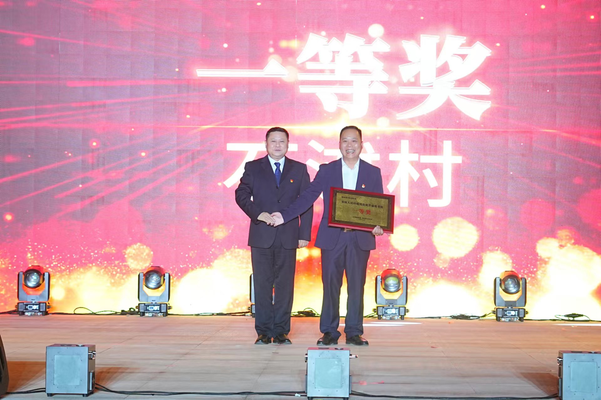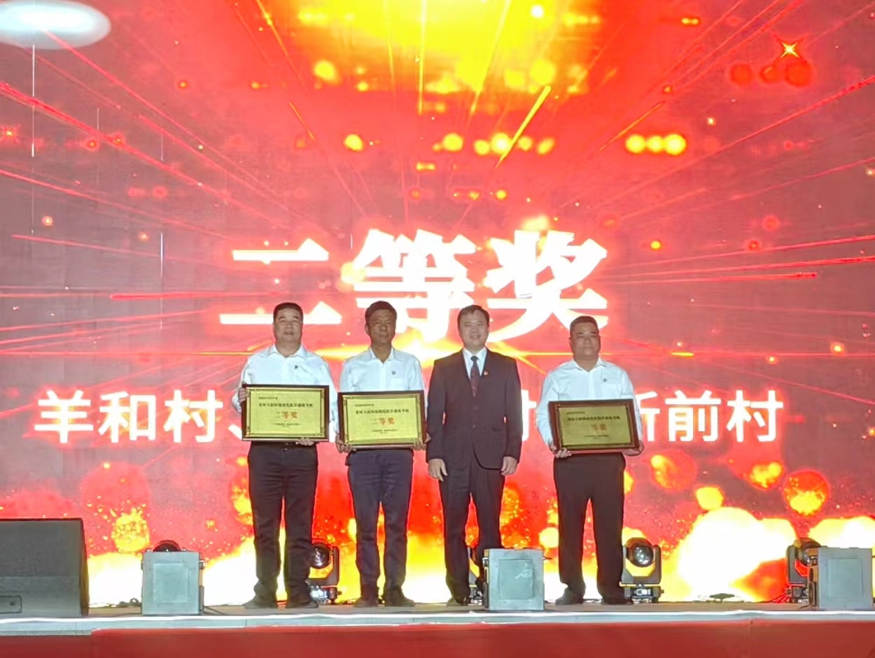 杨自力为人居环境优化提升评比一等奖石滩村进行颁奖