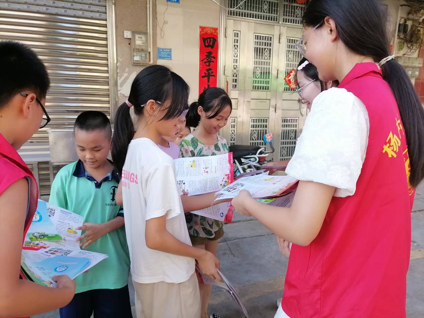 随后,志愿者们身着志愿者服深入街道、市场等场所发放禁毒及防灾减灾宣传手册。他们耐心地向过往群众特别是青少年群体发放宣传资料,并用生动的语言和真实的案例讲解涉麻精药品等成瘾性物质对青少年的危害,耐心地向群众普及各类灾害事故知识,特别是暑期防溺水基本安全知识。