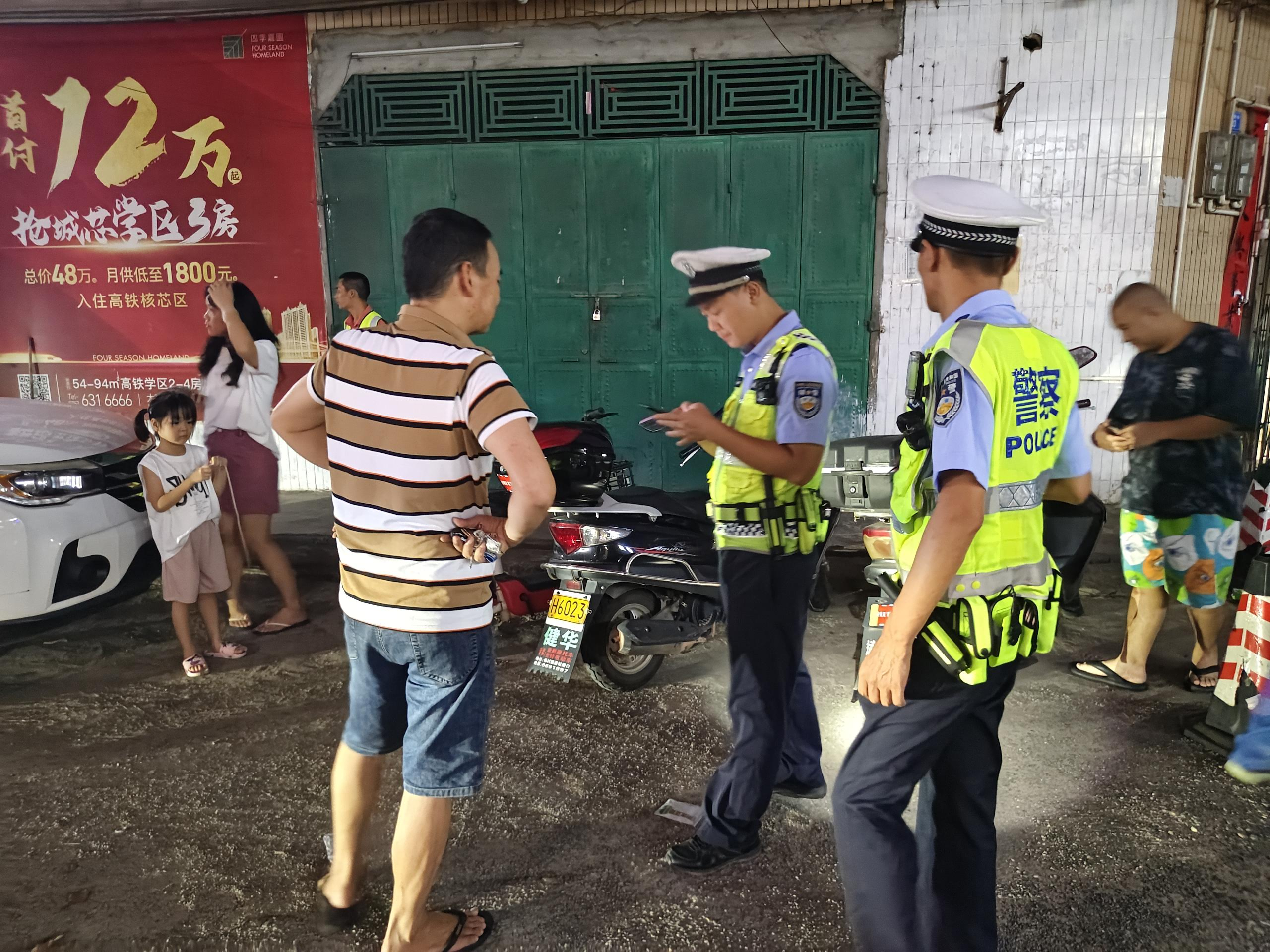 8月8日晚,镇交通运输组、杨村交警中队、综合行政执法办、志愿者协会和村(社区)干部等力量组成了一支行动组,深入辖区中心小学周边道路开展摩电交通安全集中整治行动。