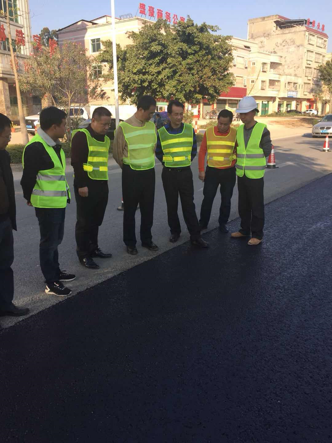 图1 单车道施工,不封闭交通 图2 施工后路面,冷却后即开放交通 图3 市公路局李瑞奇局长等到现场指导施工、安全工作
