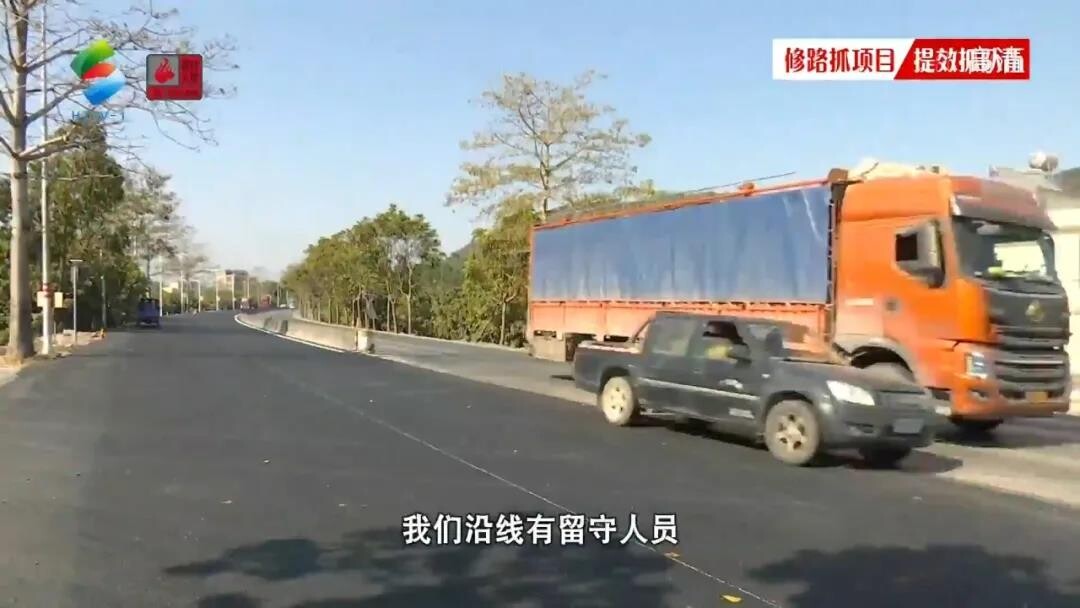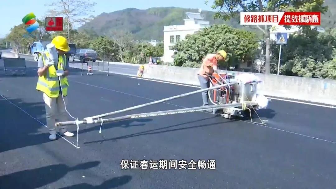 在施工现场,工人正在进行标识标线作业,目前北往南龙门往惠州方向一侧已摊铺好沥青,完成半幅改造。施工方进一步完善标线,并解除沿线临时交通封闭措施,为市民春运畅通出行提供保障。