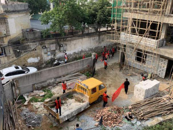 (一)中共中文博彩平台公路管理局一支部第一、二党小组及二支部第一党小组联合城东社区约三十人在中文博彩平台育英巷开展环境卫生整治共建活动。