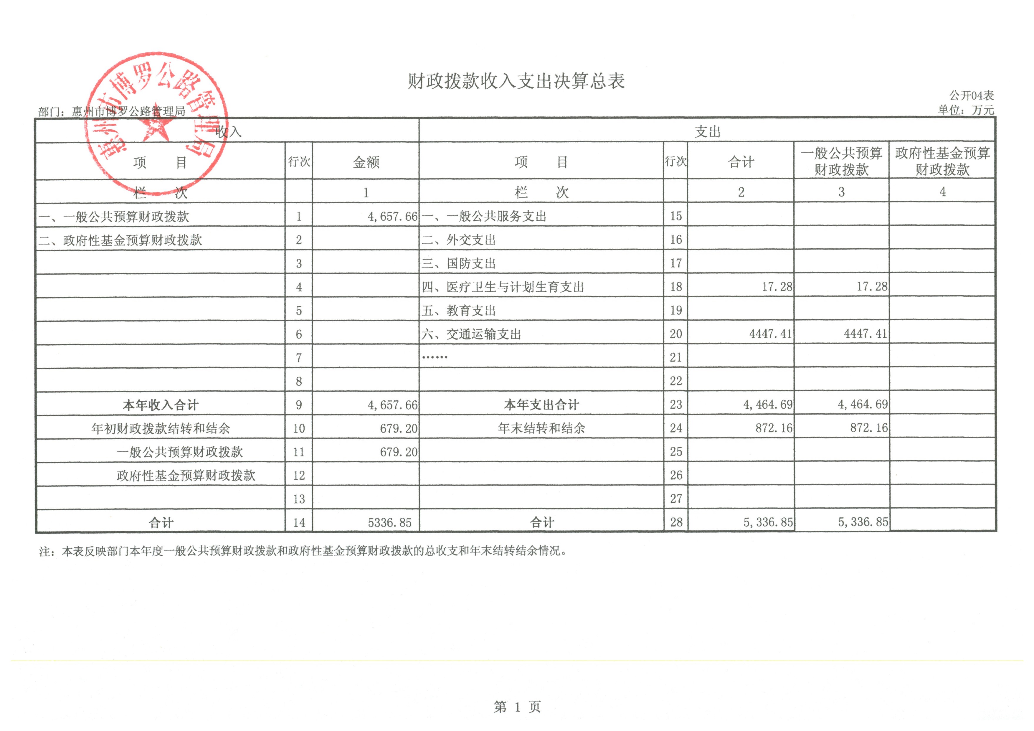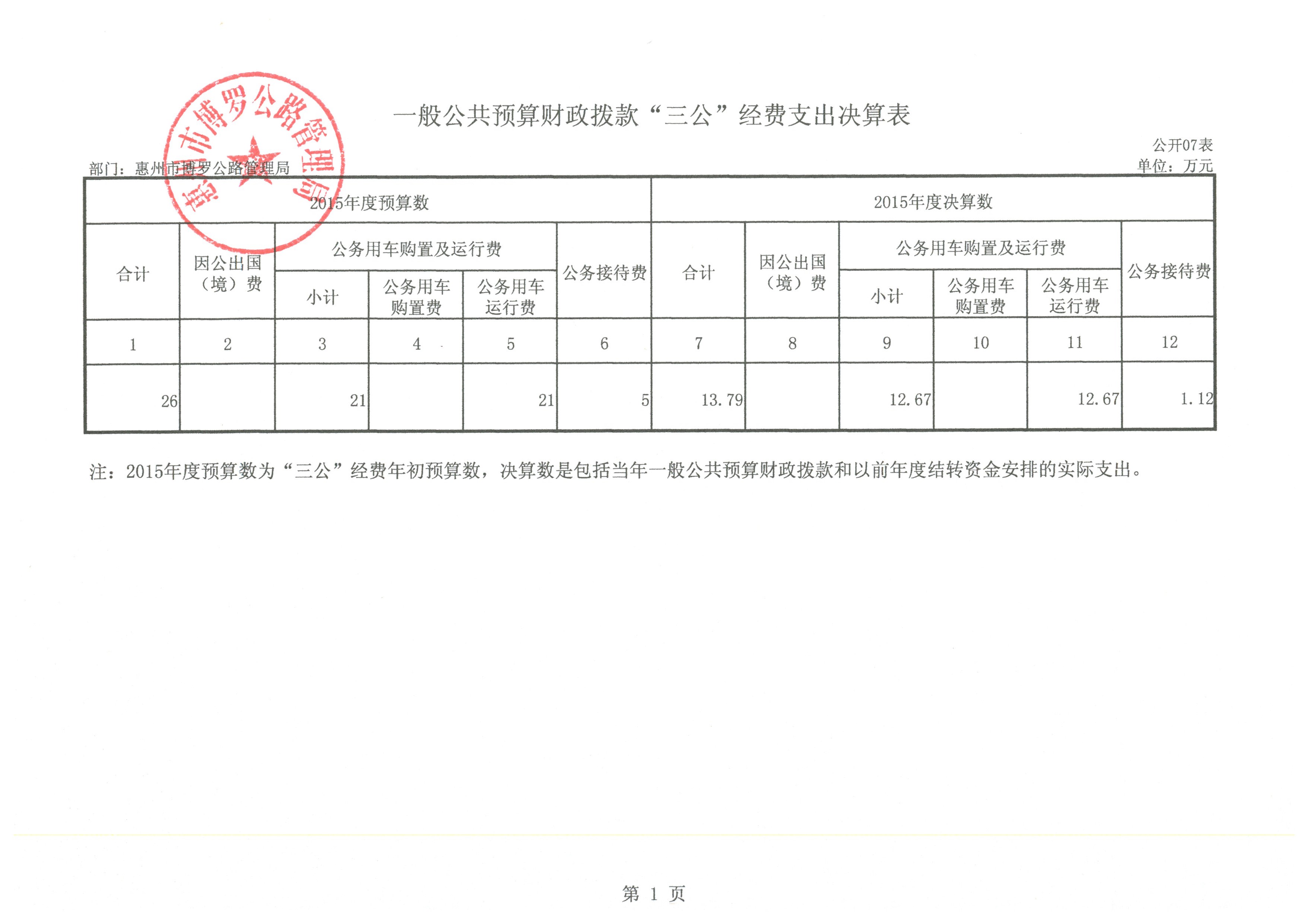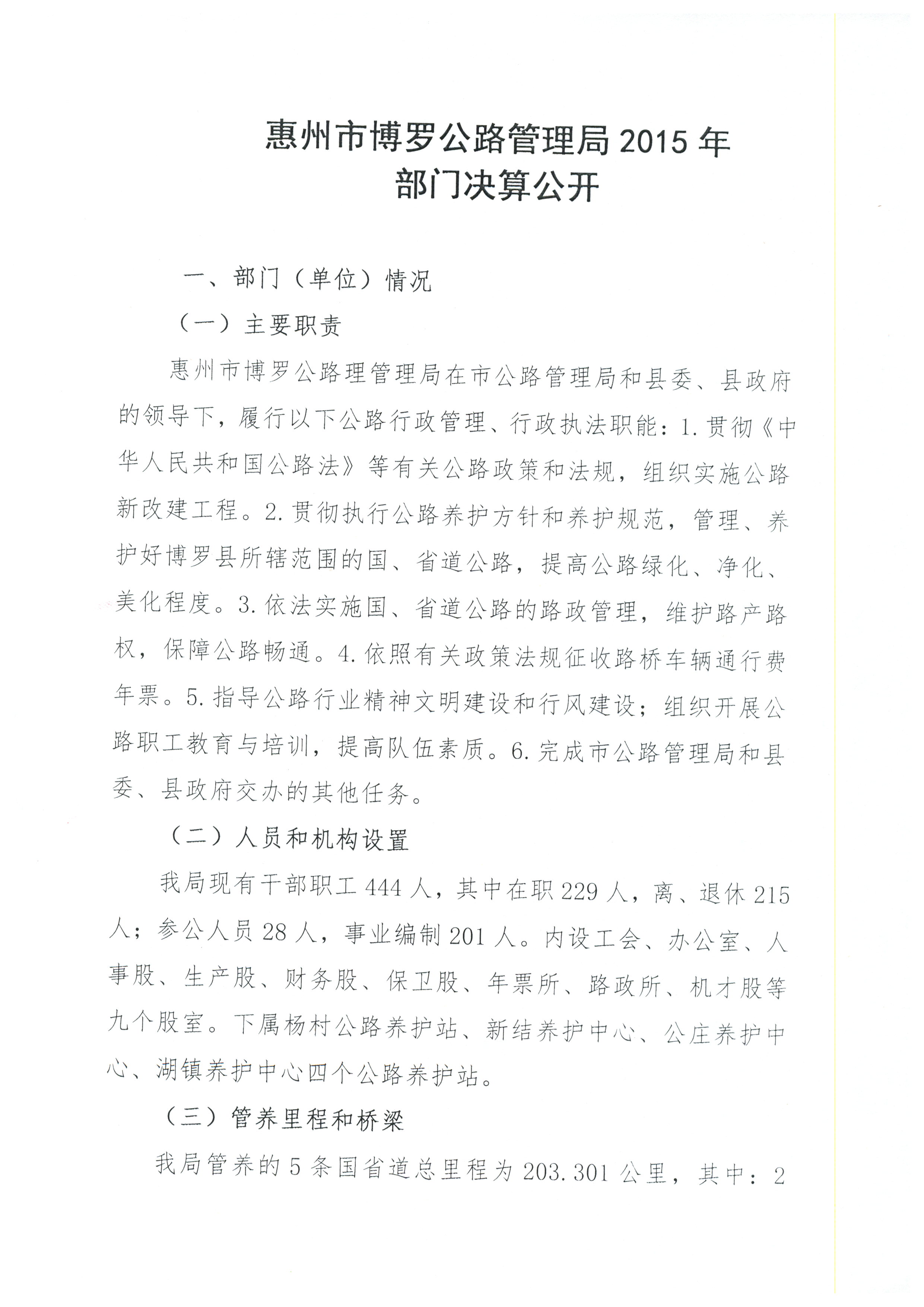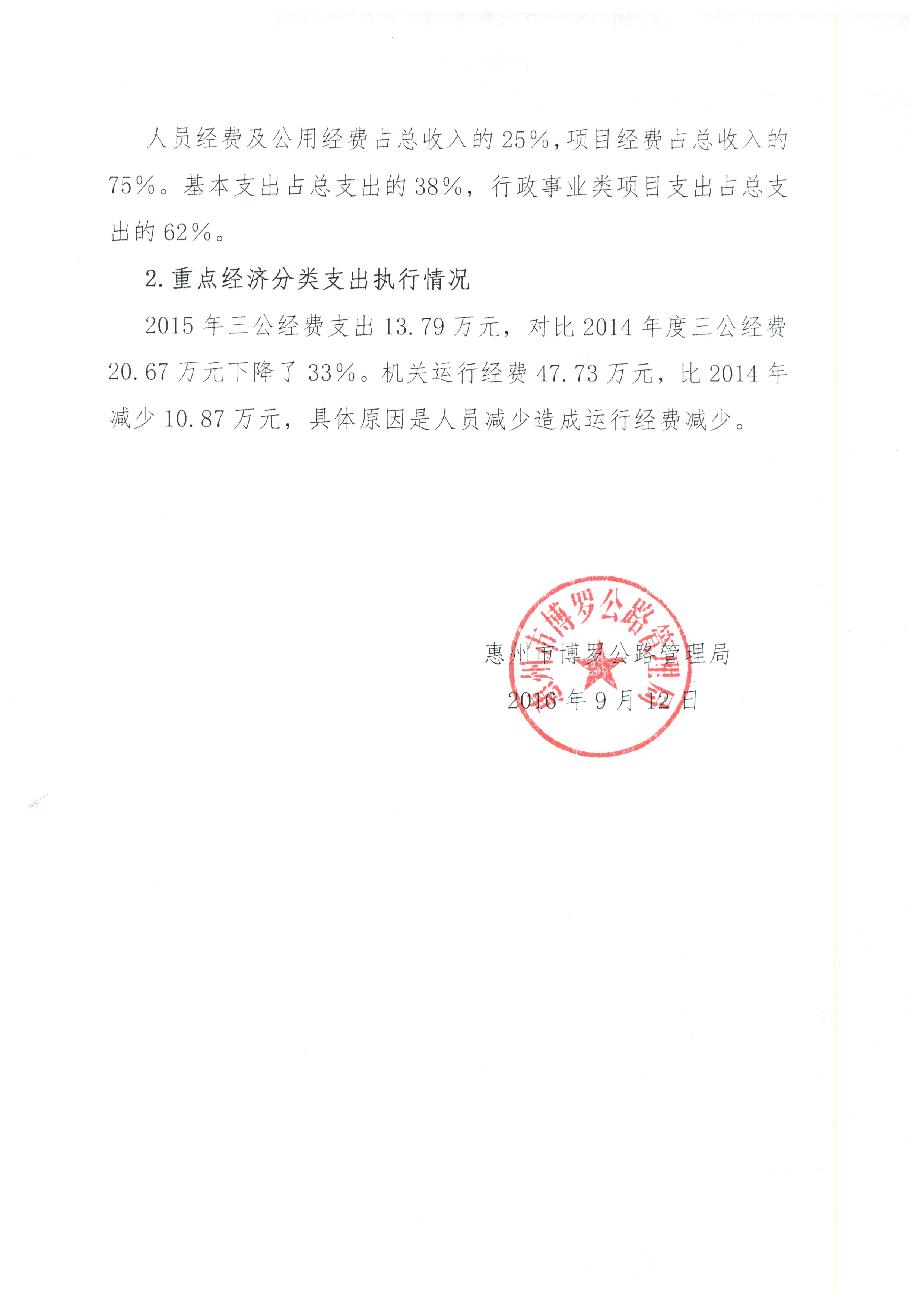 惠州市中文博彩平台公路管理局2015年部门决算公开
