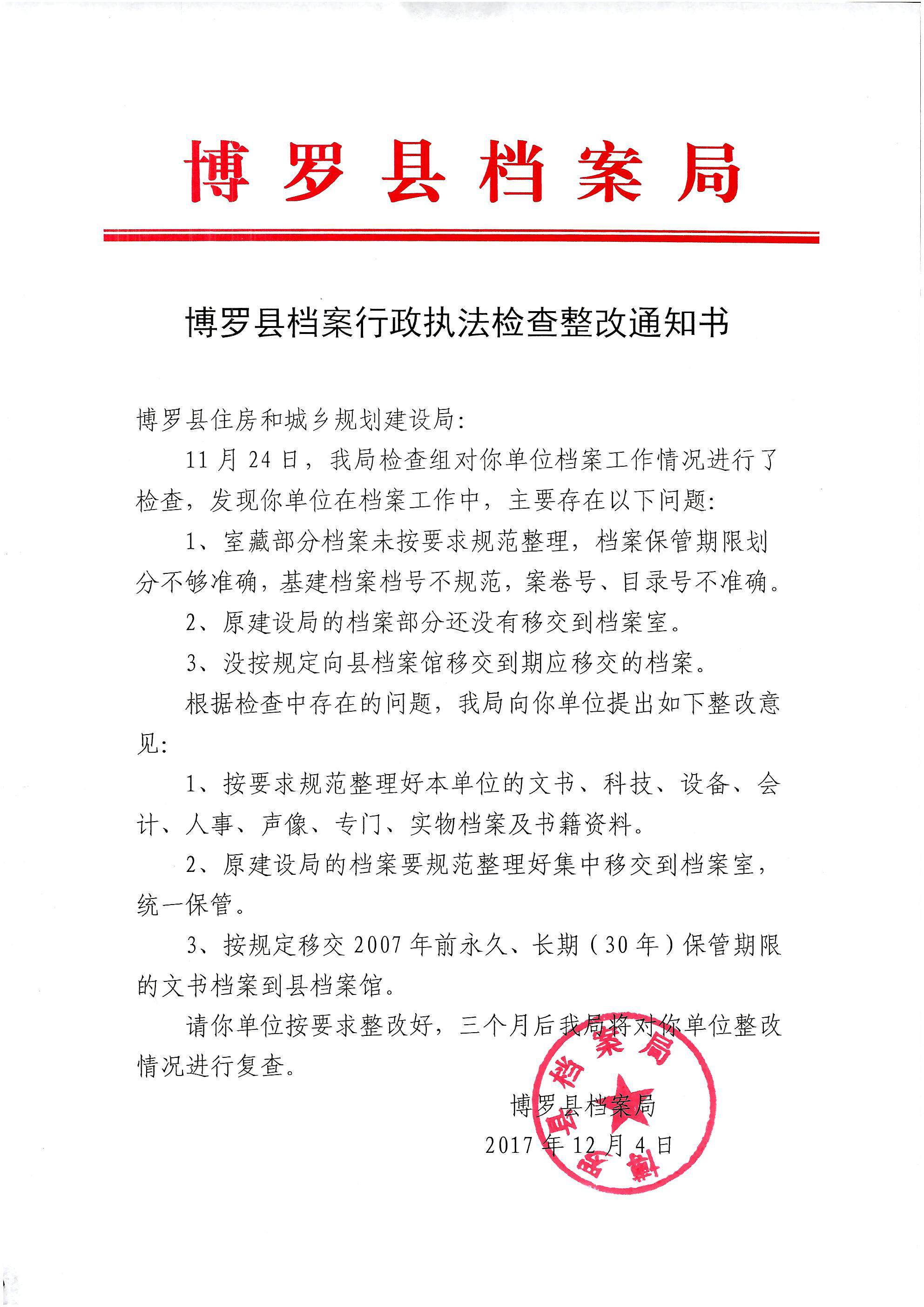 中文博彩平台档案行政执法检查整改通知书(住建局)