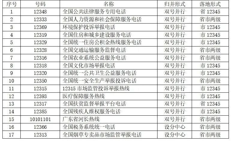 双号并行保留号码不保留话务座席的,话务座席整体并入12345热线。