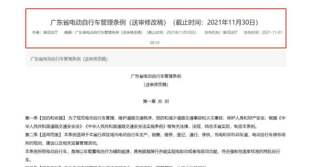《广东省电动自行车管理条例(送审修改稿)》