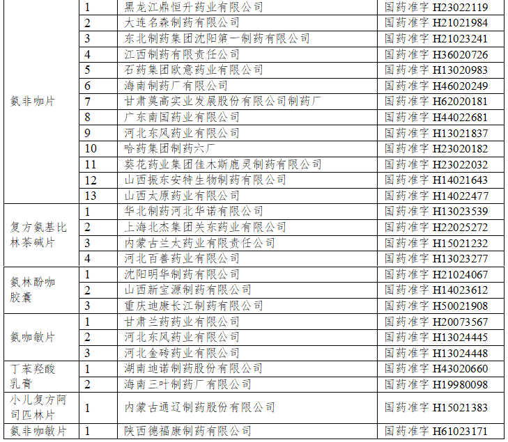 根据《中华人民共和国药品管理法》第八十三条等有关规定,国家药品监督管理局组织对小儿酚氨咖敏颗粒、氨非咖片、复方氨基比林茶碱片、氨林酚咖胶囊、氨咖敏片、丁苯羟酸乳膏、小儿复方阿司匹林片、氨非咖敏片等8个品种开展了上市后评价。