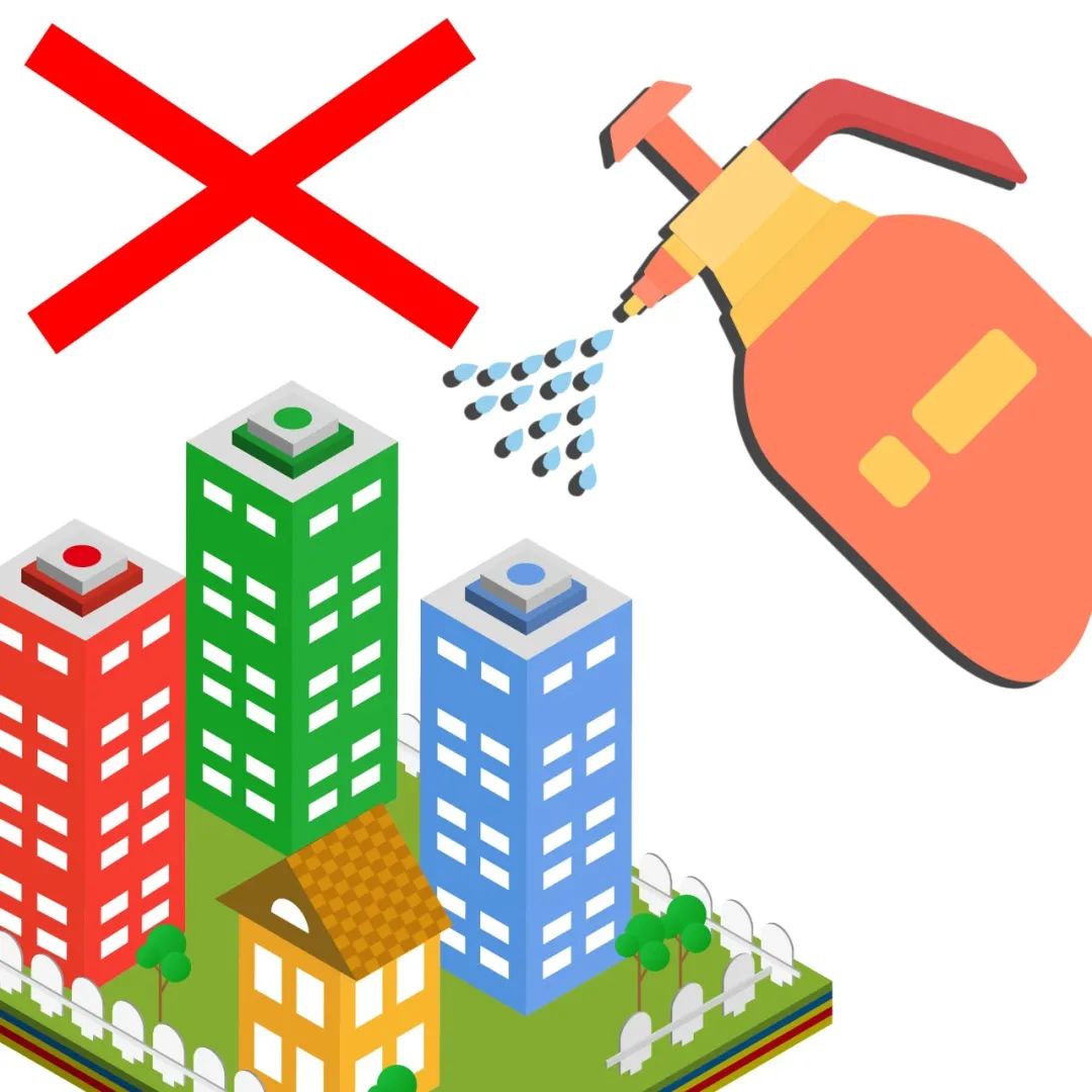 ❌ 过度消毒而忽略日常清洁。小区外环境没有明确受到呕吐物、分泌物、排泄物污染时,原则上也不需要消毒。进出小区车辆的外部,也不需要消毒。
