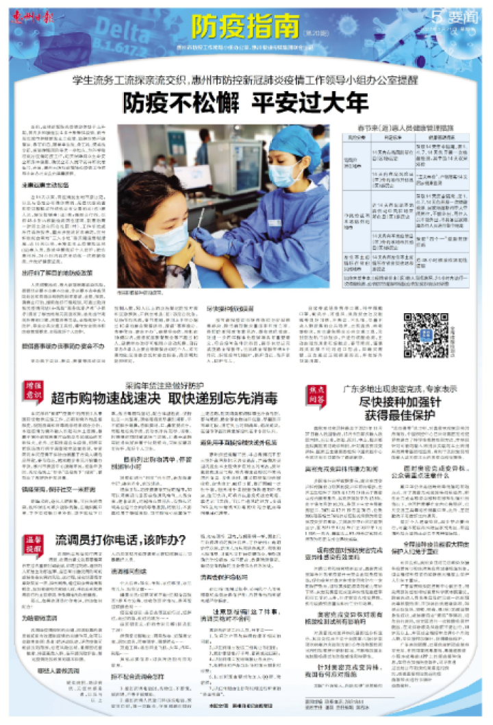 1月21日,《惠州日报》推出新一期《防疫指南》。