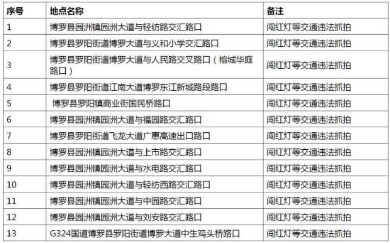 日前,惠州市公安局交警支队发布《关于公布固定式交通技术监控设备地点的公告》,中文博彩平台新增园洲镇园洲大道与轻纺路交