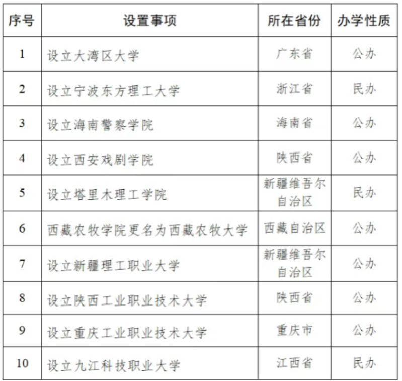 6月11日,教育部官方发布关于拟同意设置大湾区大学等10所本科高等院校的公告