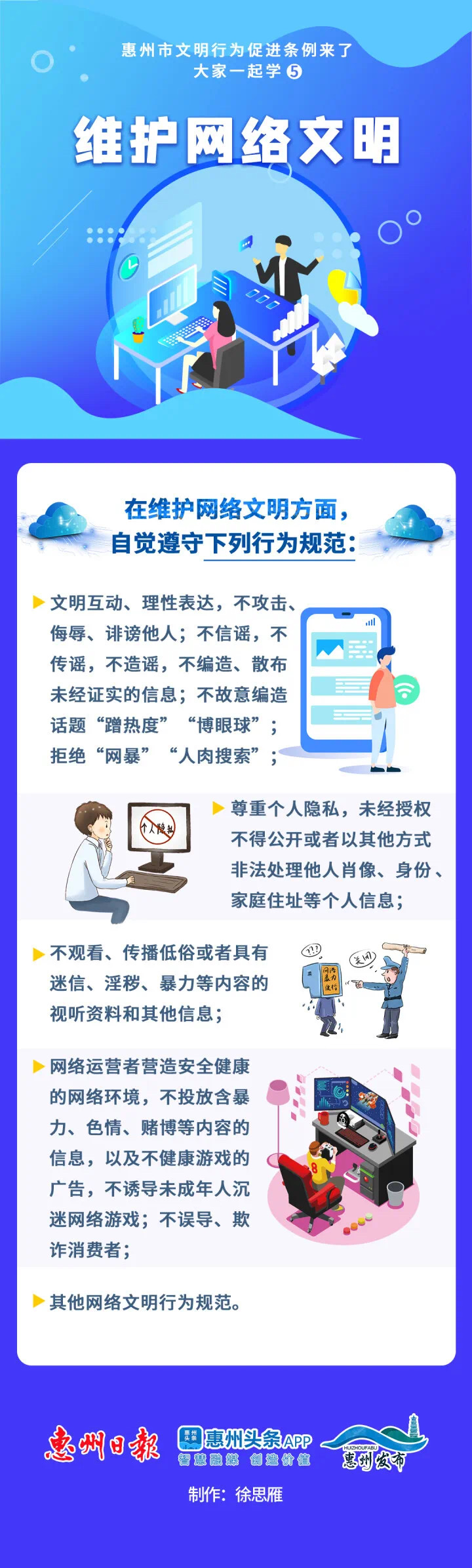 大家一起学!《惠州市文明行为促进条例》⑤维护网络文明_文明创建_中文博彩平台